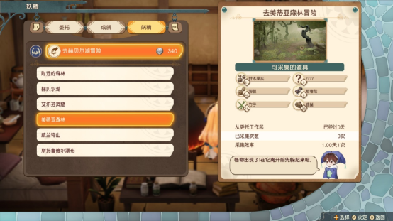 如果觉得光是采集和调和就让你无暇分身,那么不用担心,本作完完整整的保留了原版的妖精系统,当第一次做出3级道具的时候,一只妖精就会来敲门并赠予妖精手镯,持有这个手镯就可以去妖精森林雇佣各种颜色最多7只妖精,颜色代表这只妖精能相当于玛莉不同的效率来工作,相应的,效率越高的妖精收取的费用也越高。玩家能够在菜单中管理每只妖精去做什么样的工作,甚至可以让一半妖精采集一半妖精调和然后玩家去出售道具来形成永动。