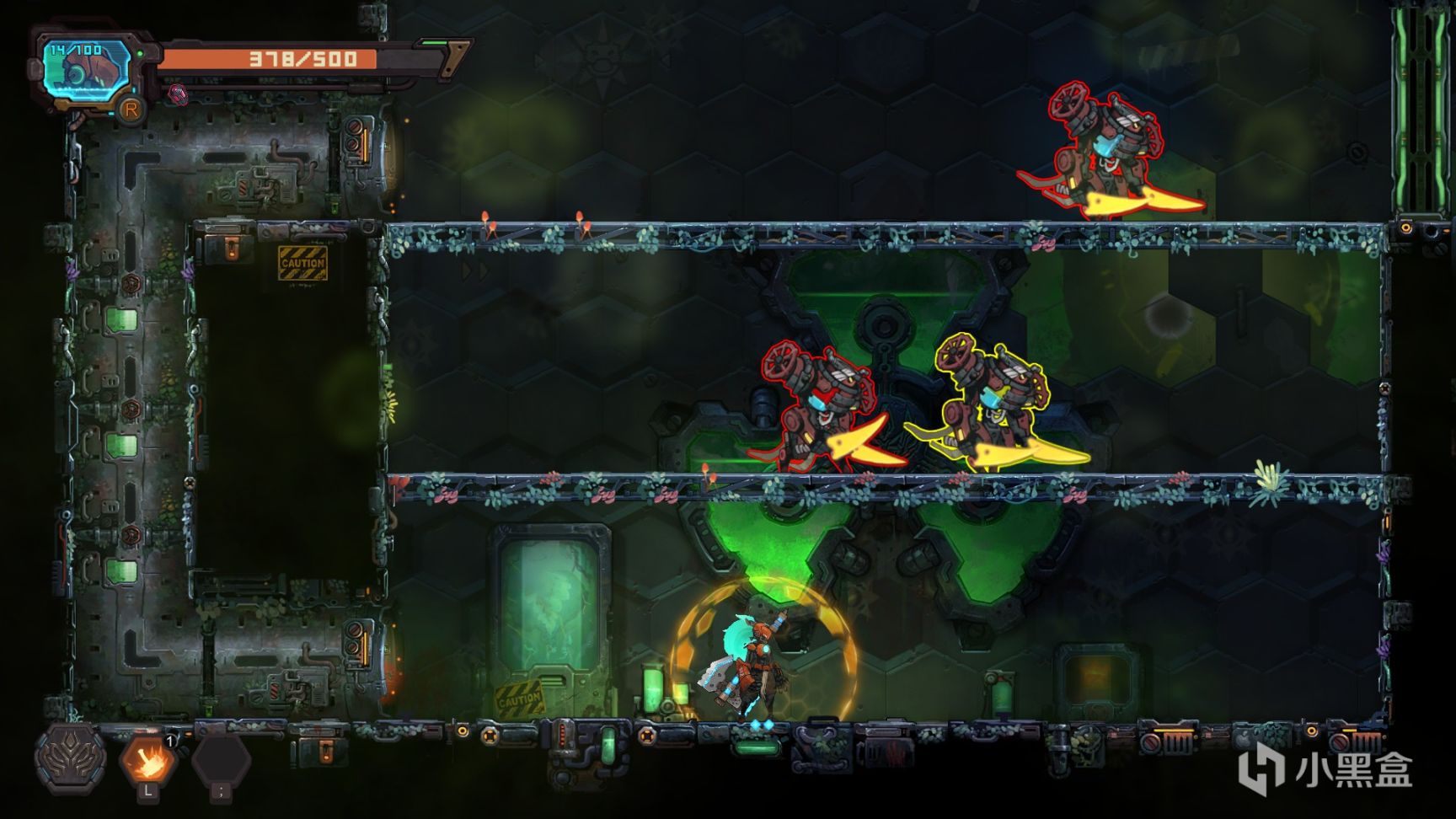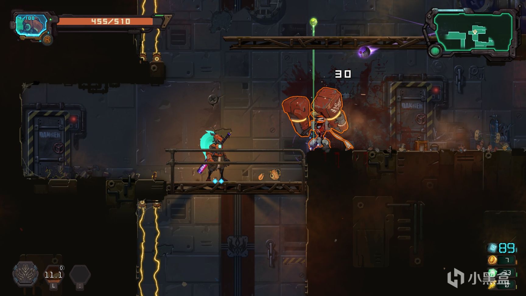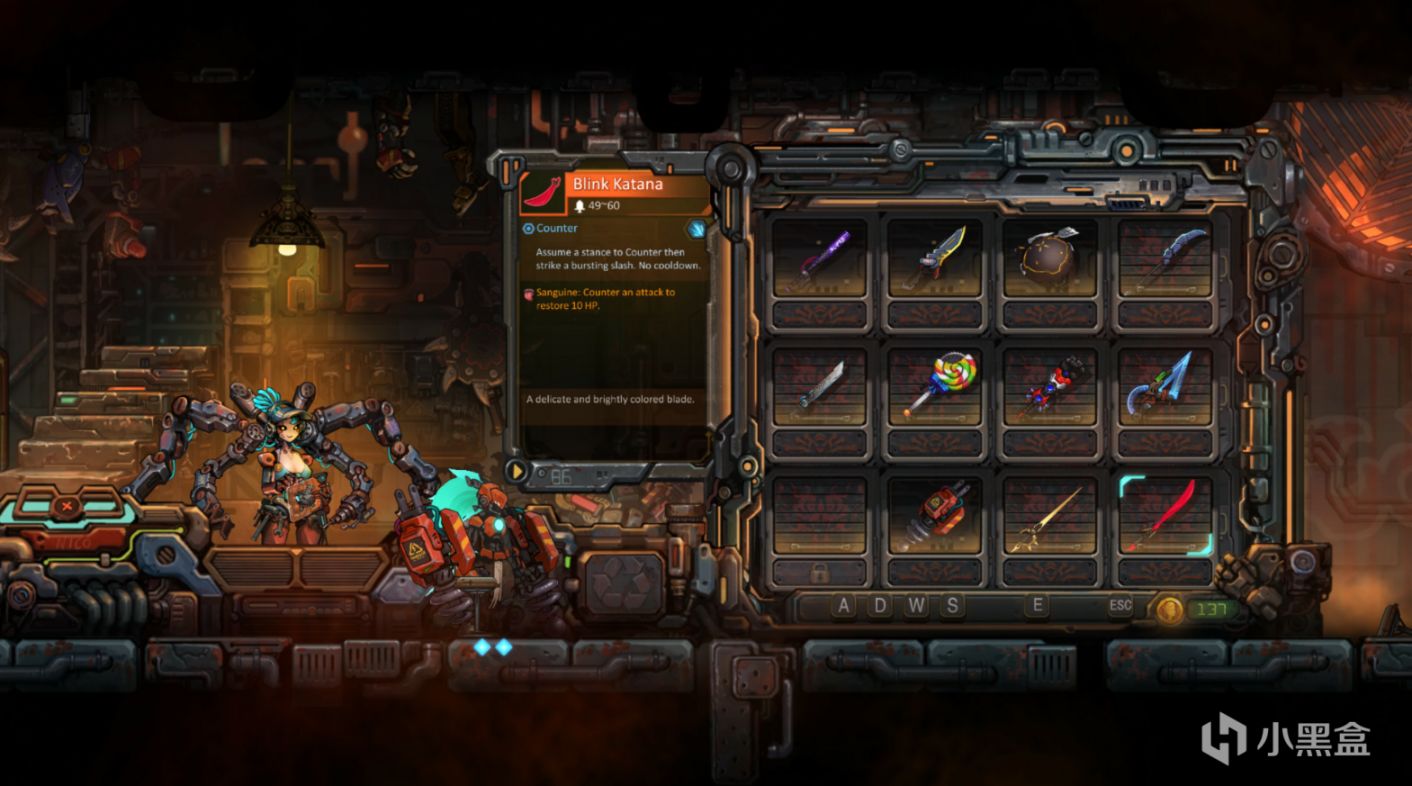 此外游戏还包含了类似于“球棒”、“备胎”、“键盘”、“戒尺”等等看起来比较无厘头的武器——但,它们还真不只是还一个外形,而是都包含有各自的玩法逻辑在其中。所以回到主题:冷兵器如何玩出新花样?答案首先在于需要围绕着横版动作游戏设计的基础逻辑,其次就在于对于进阶机制与差异化的考量,这也是内容其实平平无奇的《湮灭线》在我看来最完善的完成了的内容。