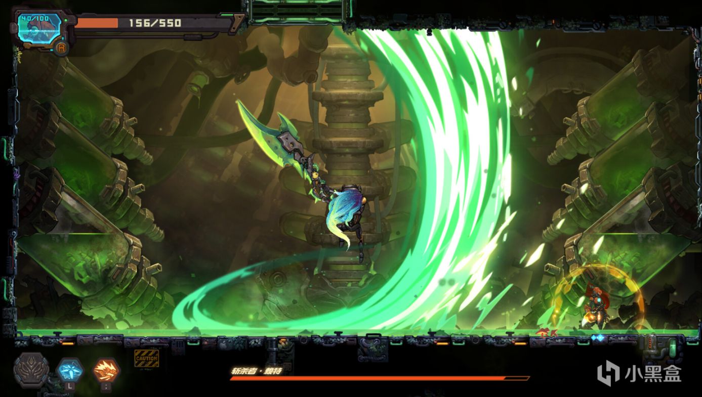 但作为“防御方”,相对于进攻方来说永远是更为被动的一方,无论是格挡的架势条还是闪避消耗的体力条,终归会有耗尽的时刻。在横版动作游戏中,因为一对多、尤其是敌人存在远程攻击单位的情况,最终造成避无可避的情况不在少数,《湮灭线》也会面临在“关门打狗”的战斗房间被敌人逼到退无可退的地步。那么对于主动进攻而言,“硬直”就成为了核心概念,那么基于这一点,我们可以一窥《湮灭线》中武器设计逻辑。