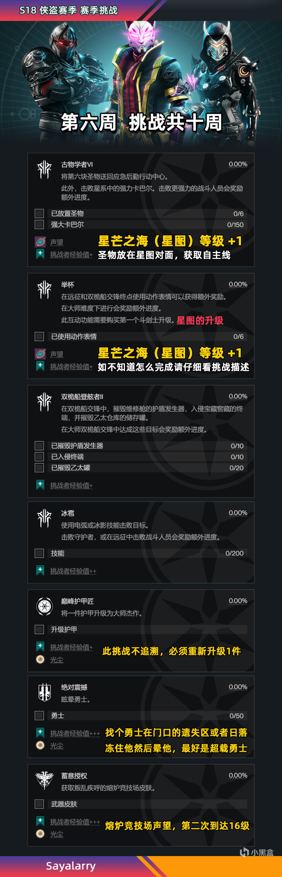 第一周手炮死从天降→第二周霰弹枪心操→第三周AR使命羁绊→第四周榴弹老兵的权利→第五周脉冲最终恐惧