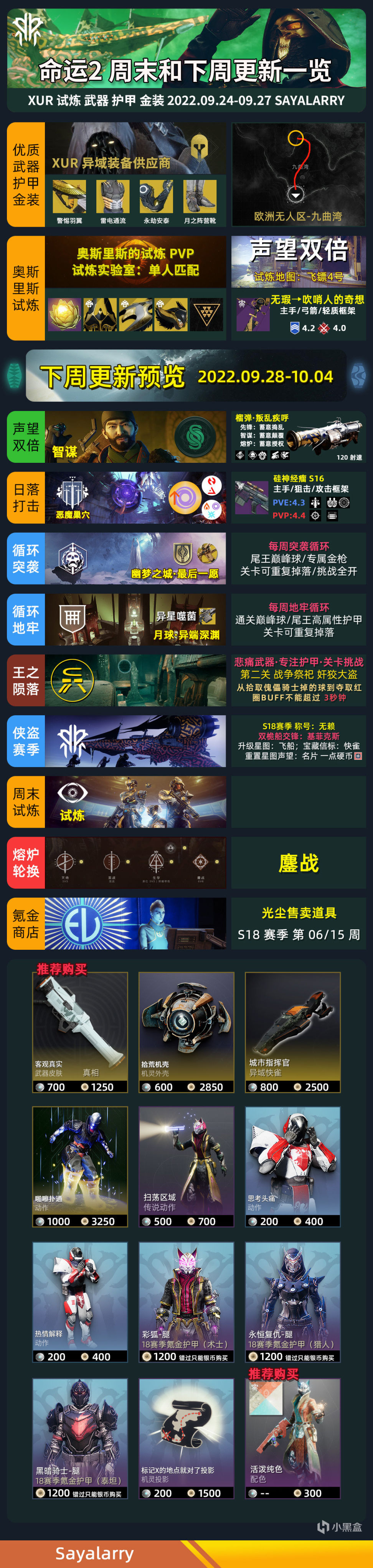 今日艾达模组、传说遗失区、枪匠武器 2022.09.24