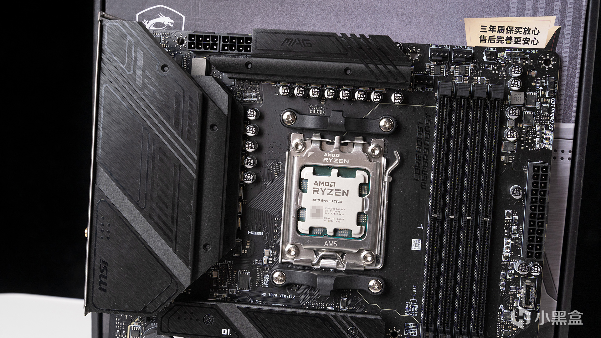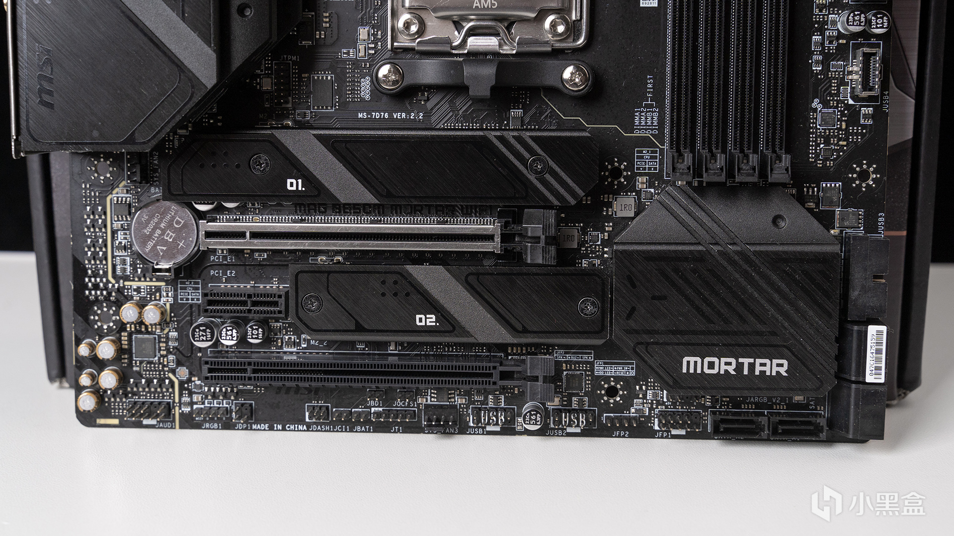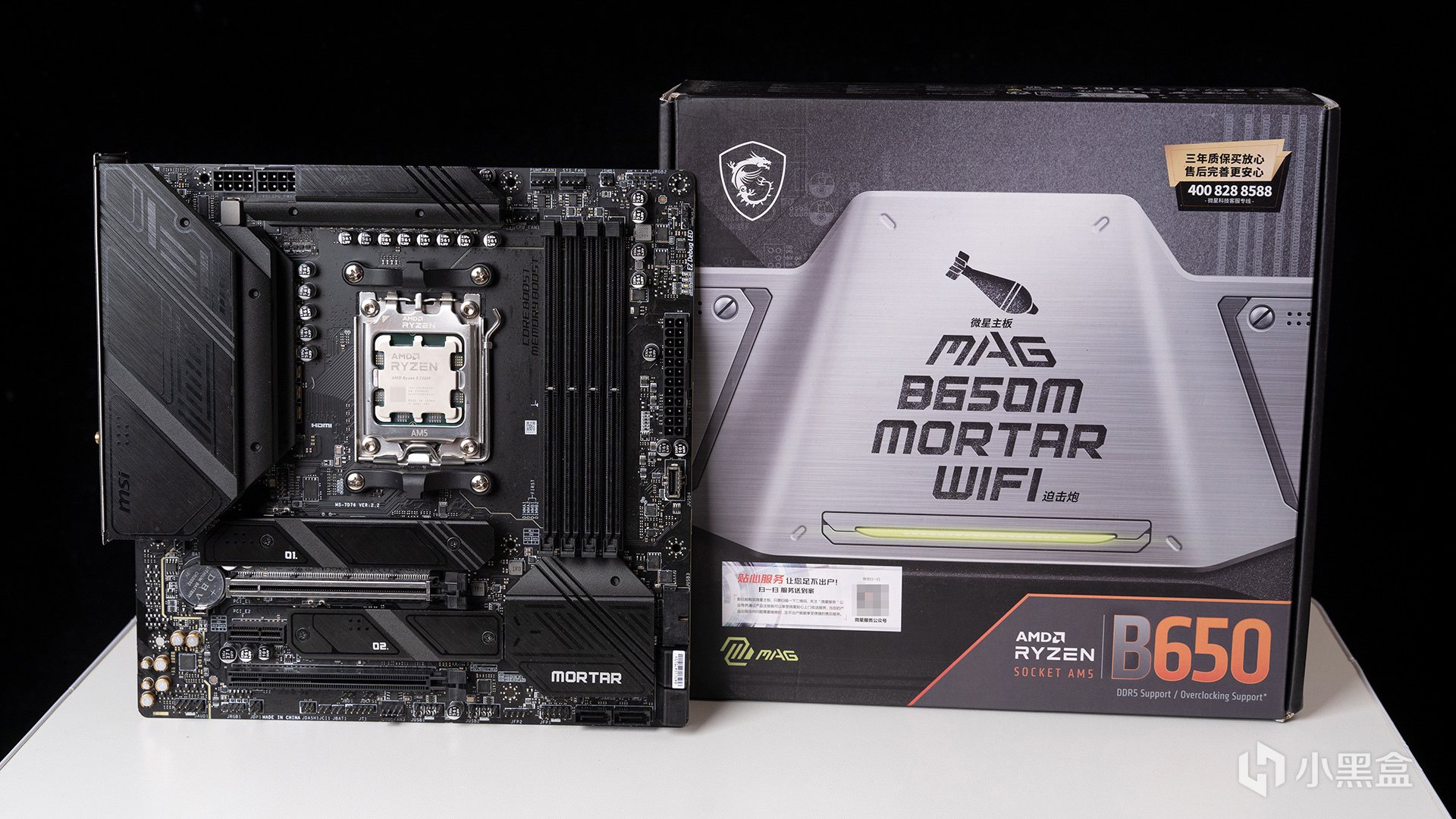 銳龍5 7500F選擇的是微星MAG B650M MORTAR WIFI迫擊炮,整體並沒有沿用此前的銀白風格,而是採用純黑的小衆設計。爲什麼不是搭配實惠的A620呢?原因很簡單,這一代B650規格定位更高,關注度比X670高多了,並且按照AMD路線圖,官方明確表示AM5主板壽命至少持續到2026年,妥妥可以傳三代,其次B650對於超頻毫無限制。