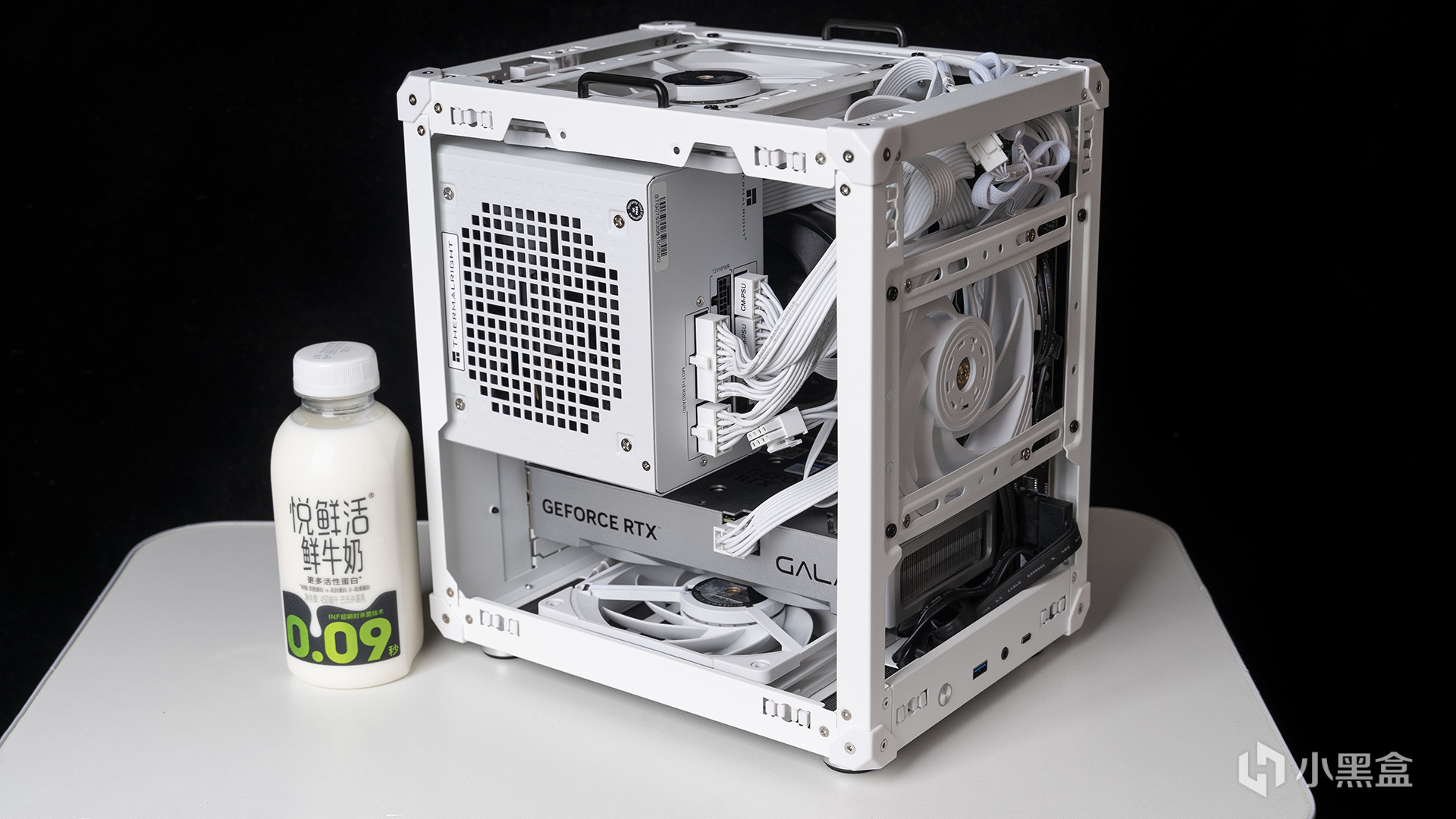 整機完成圖展示,這是一臺四面佈滿洞洞、內部卻擁擠的主機,屬於MATX類型的機箱,體積含腳墊爲15.8L,在M-ATX機箱中且算是體積比較小的一款。以下是裝機配件全家福和型號詳情,有興趣的朋友可以參考琢磨一下。