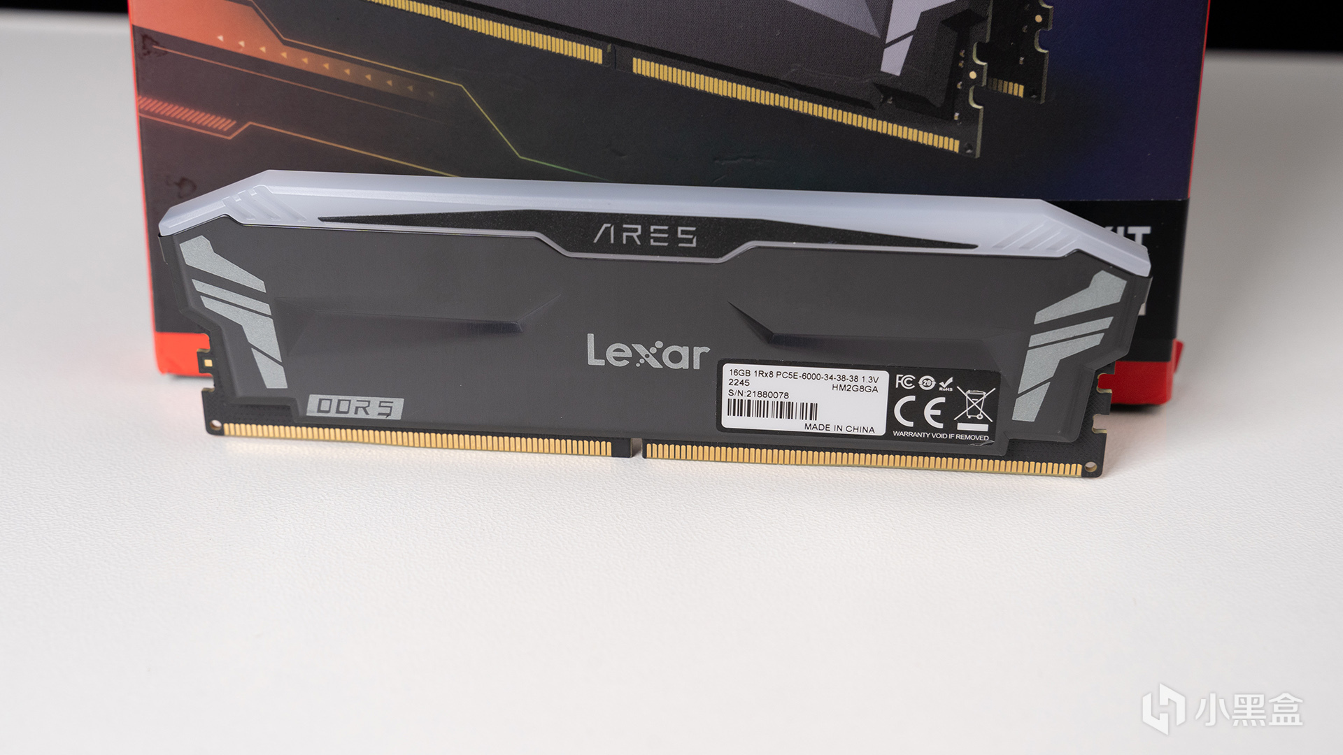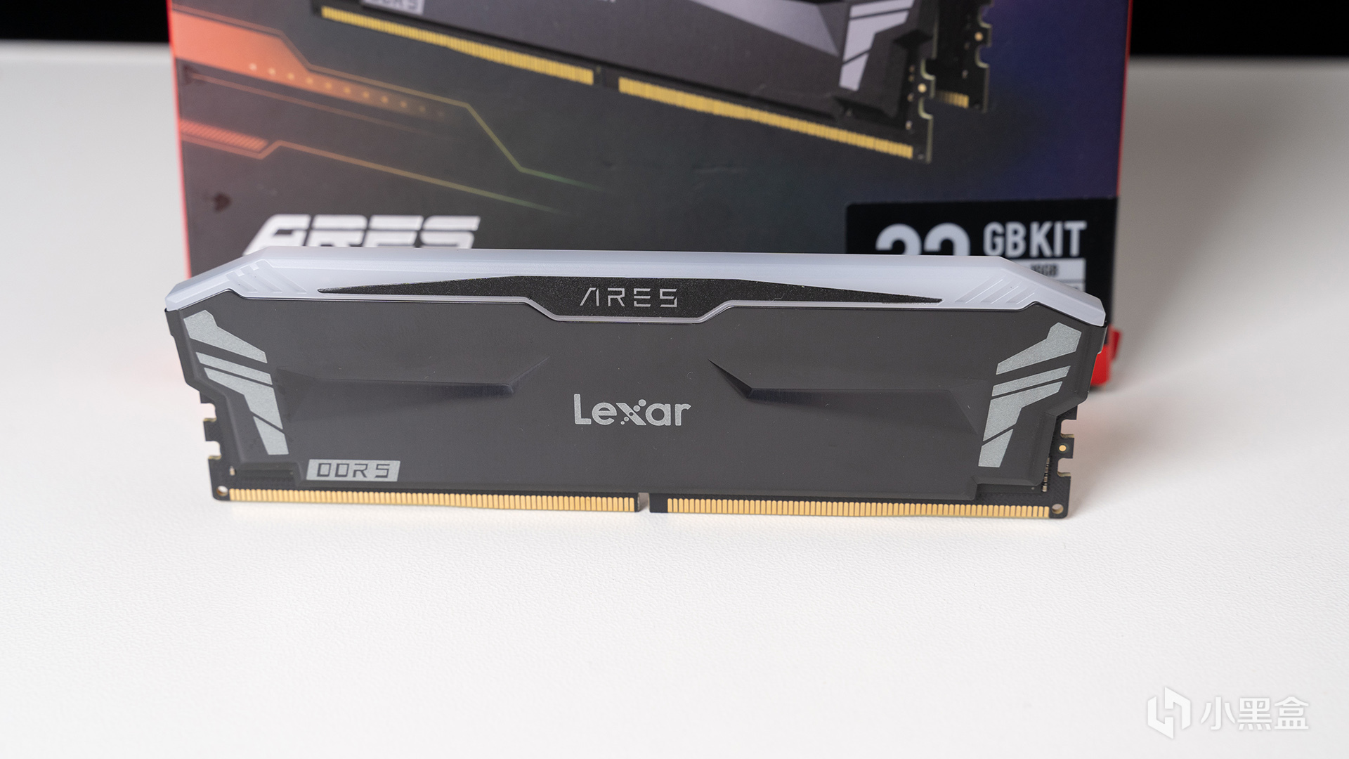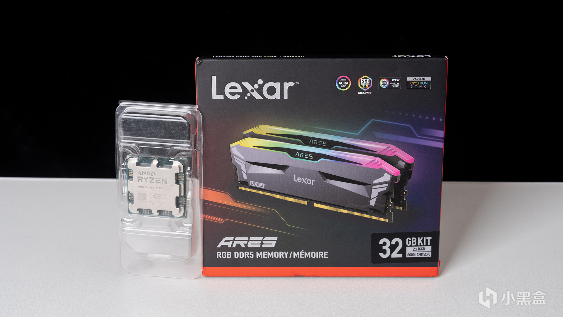 銳龍5 7500F和其他銳龍7000處理器一樣,默認情況下甜點頻率就是DDR5 6000MHz,故內存搭配選擇雷克沙這款ARES RGB DDR5 6000C34 16GBX2,包裝採用紅邊黑底的設計,映入眼簾的是產品渲染圖,上方標註支持華碩、技嘉、微星和華擎四大RGB軟件調控。