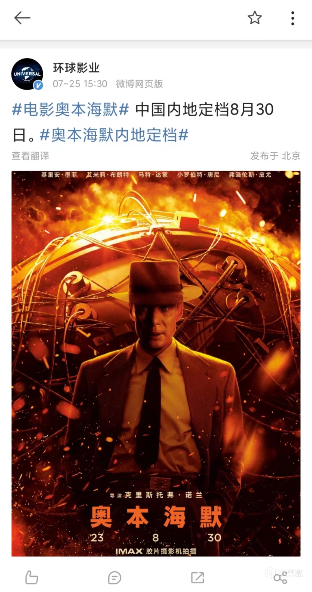 据环球影业消息,电影《奥本海默》将于8月30日于中国内地上映。