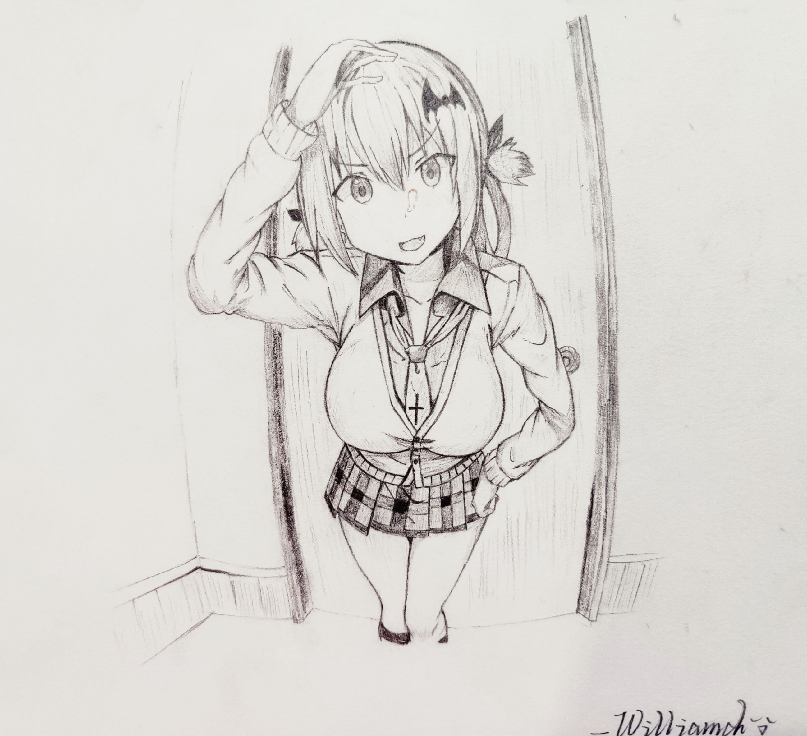 励志要成为大恶魔,没想到成为了搞笑角色。画的时候不小心把墨渗上去了,只能扣掉一块,大遗憾