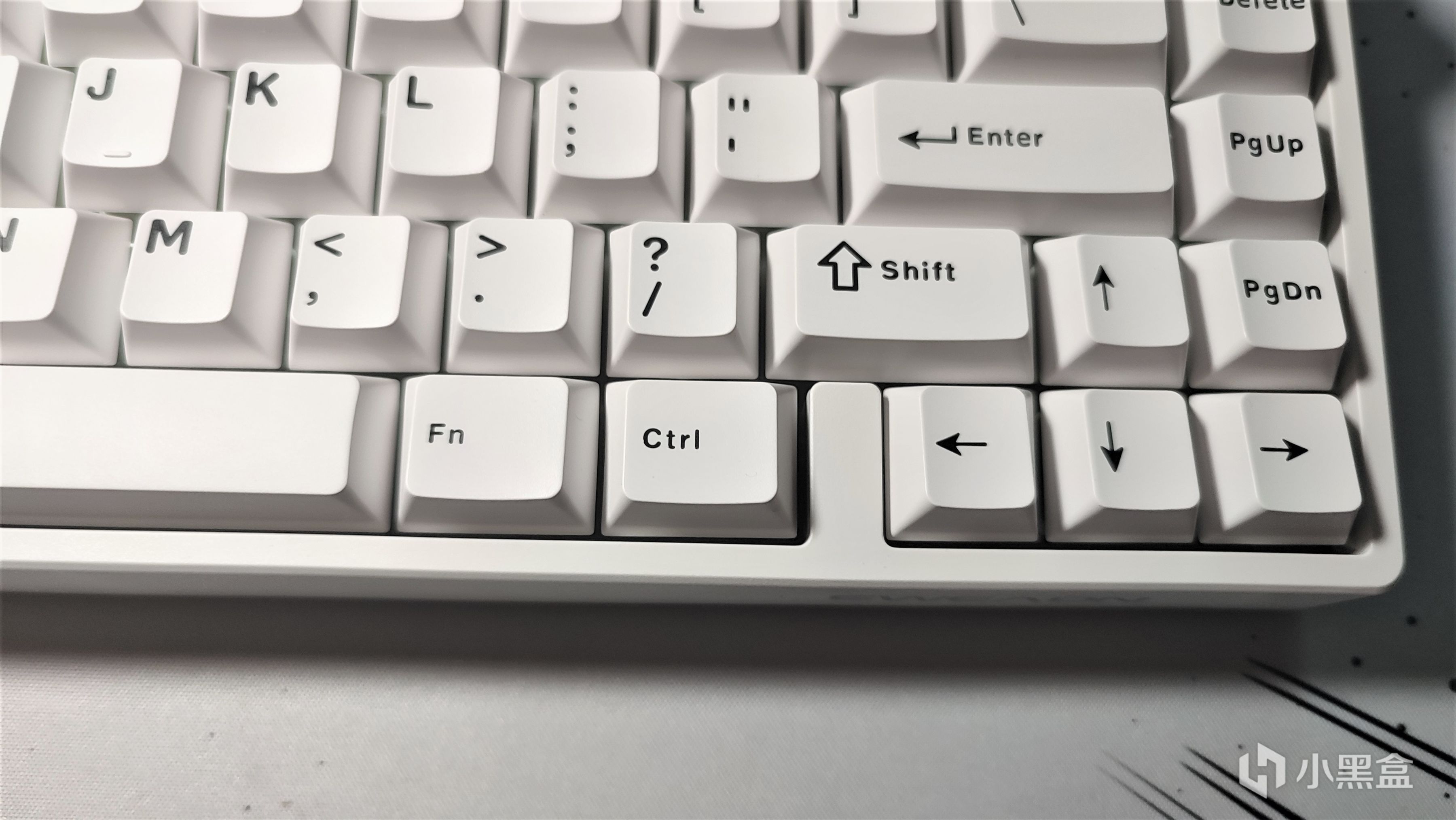 键帽采用的是PBT材质的双色注塑键帽,整体没啥设计就是纯白键帽+黑色字符,喜欢简约风的看这个键帽应该会很喜欢,不喜欢的就看着觉得很素。高度则是大家最喜欢的原厂高度。
