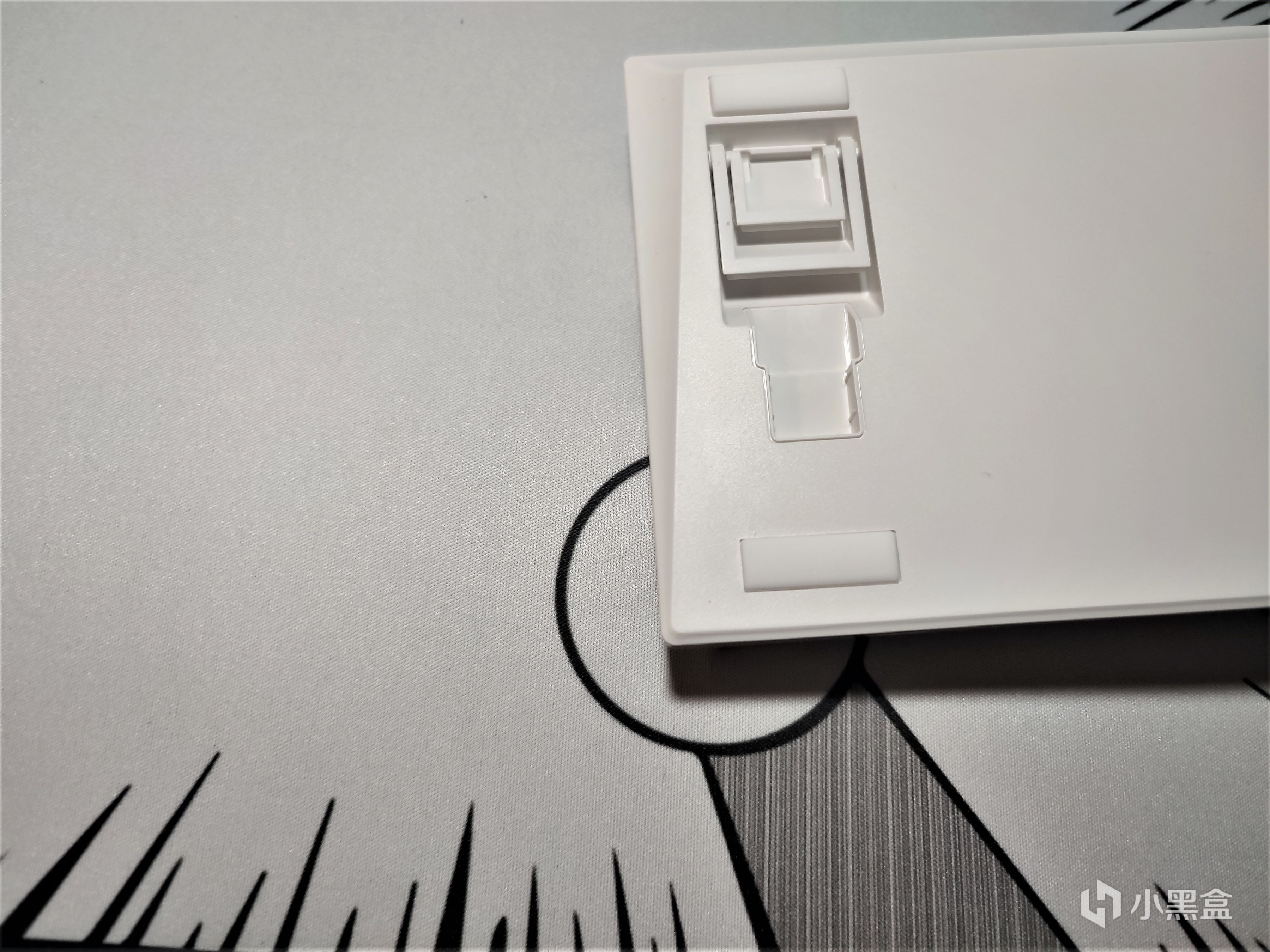 背面东西很少,但二段脚撑+防滑贴还是有的,再就是中间的贴纸了,接收器收纳仓则是在左侧的二段脚撑下方,不过意外的是竟然不是磁吸收纳仓,用手抠出来还是有点费劲的。