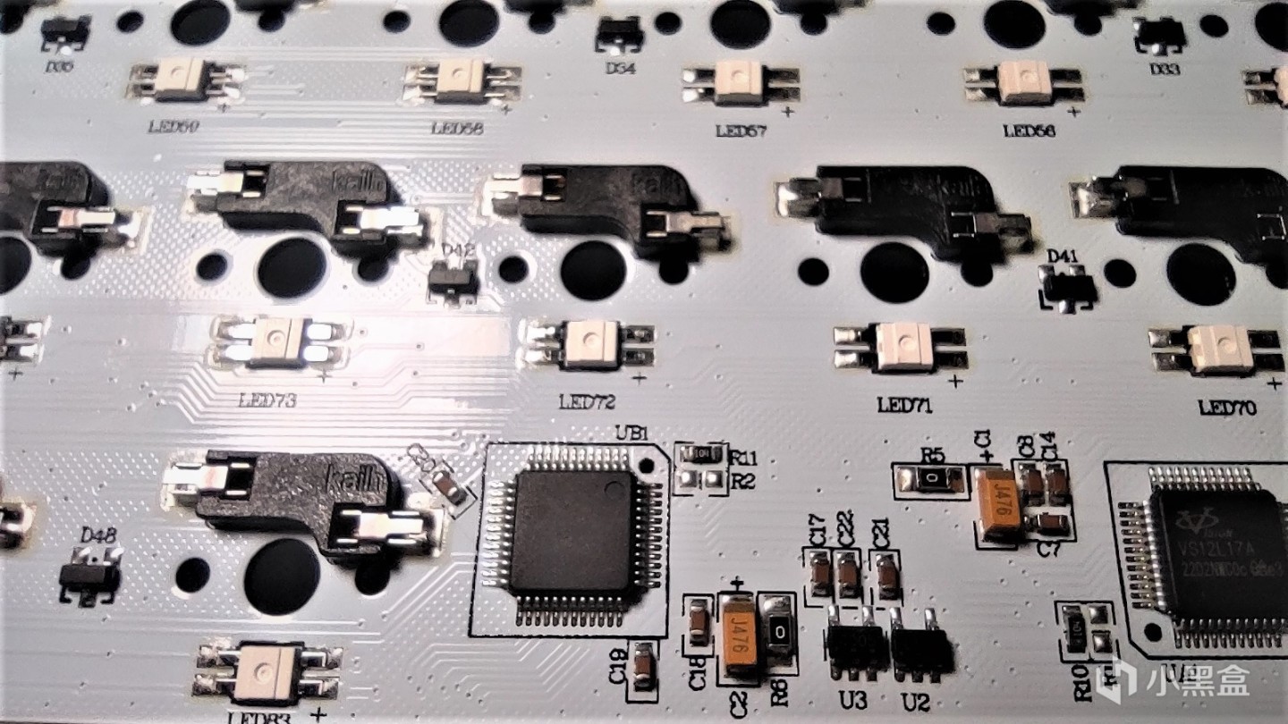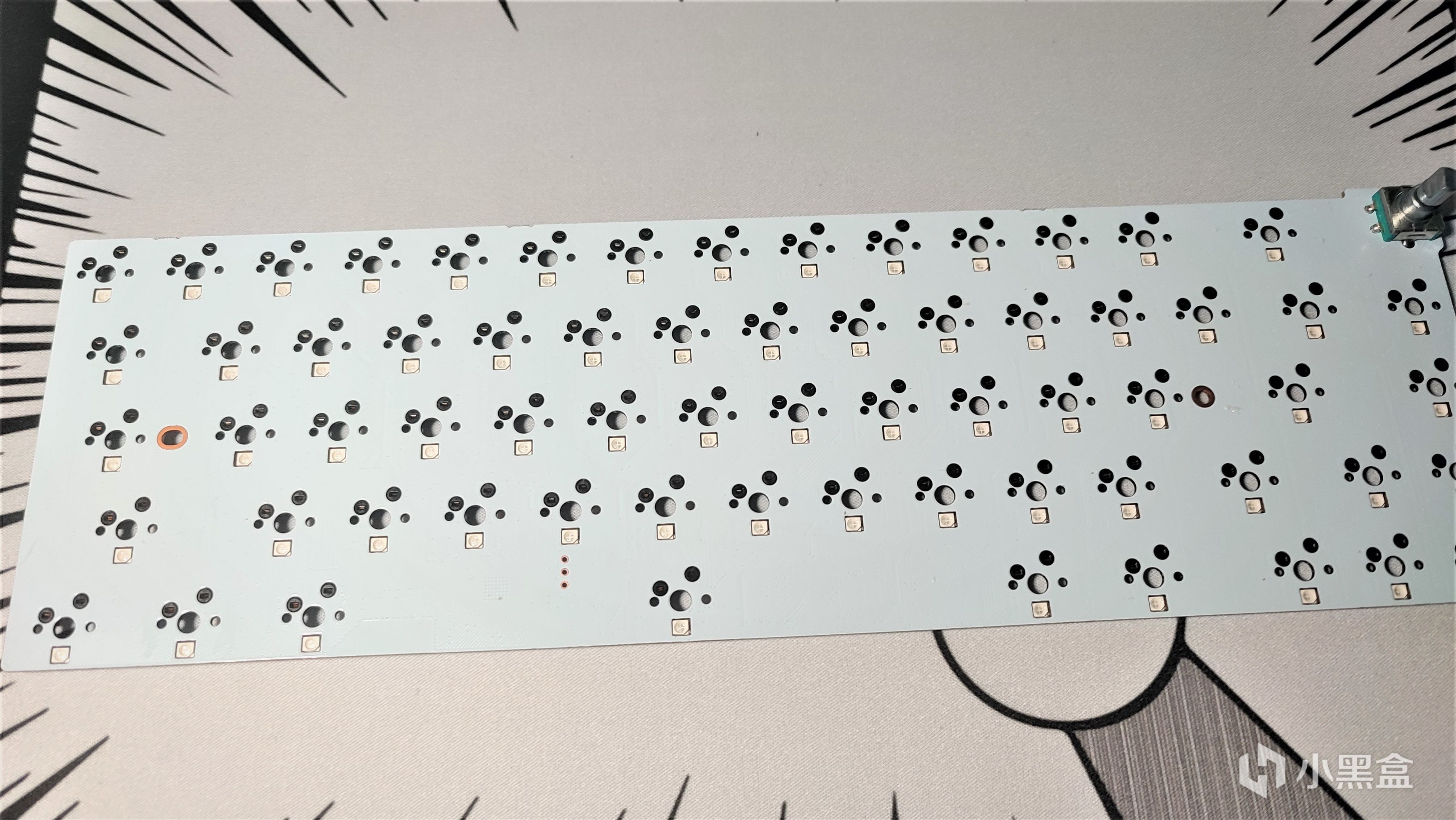 PCB和定位板并没有选用当前主流做法——开槽,整体手感上会偏硬,按压起来并没有下沉很多。