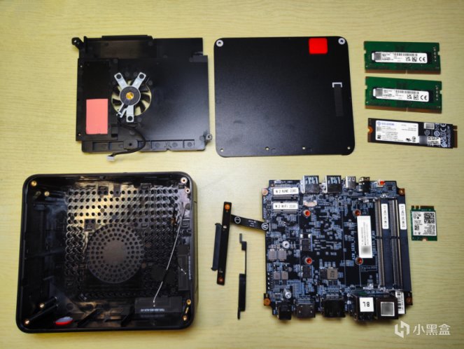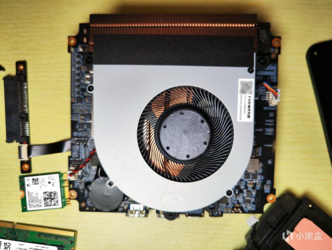 拆去系統風扇支架,便可以看到主板,固態硬盤、內存、網卡等也在這裏。