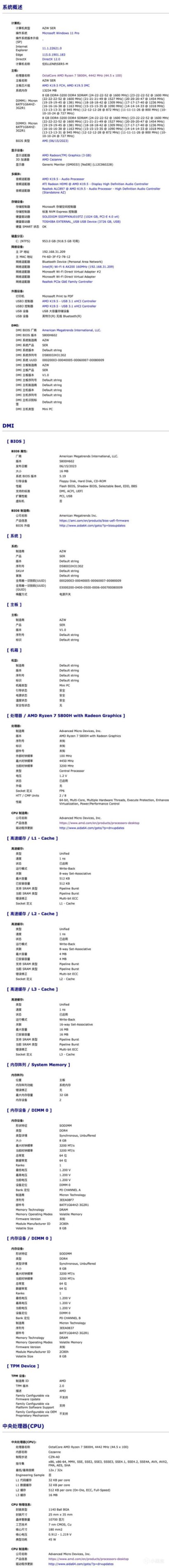先看下基本信息,SER5 MAX同樣搭載了Windows 11 Professional專業版,出廠21H2可升級22H2。