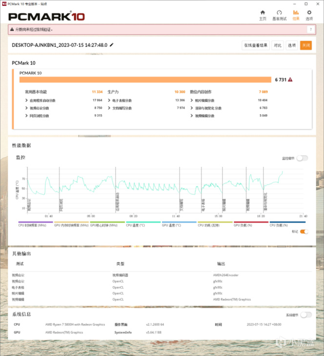 綜合日常場景跑個PCMark 10,得分達6731,日常辦公娛樂場景都不在話下,在最後渲染環節壓力上來了。