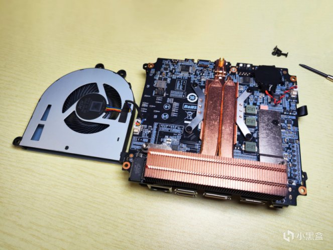 取出主板翻到背面,巨大的散熱風扇佔據了中間一大部分。