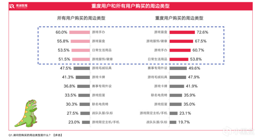 遊戲周邊市場中,手辦、盲盒、生活用品和遊戲服飾/徽章是用戶購買的主要類型。消費者更加關注有紀念/收集意義和是自己喜歡的遊戲同款的產品。
