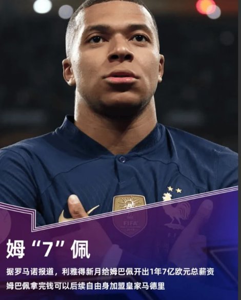 利雅得新月正式向大巴黎报价姆巴佩3亿转会费,并且开出了7亿欧元的年薪!