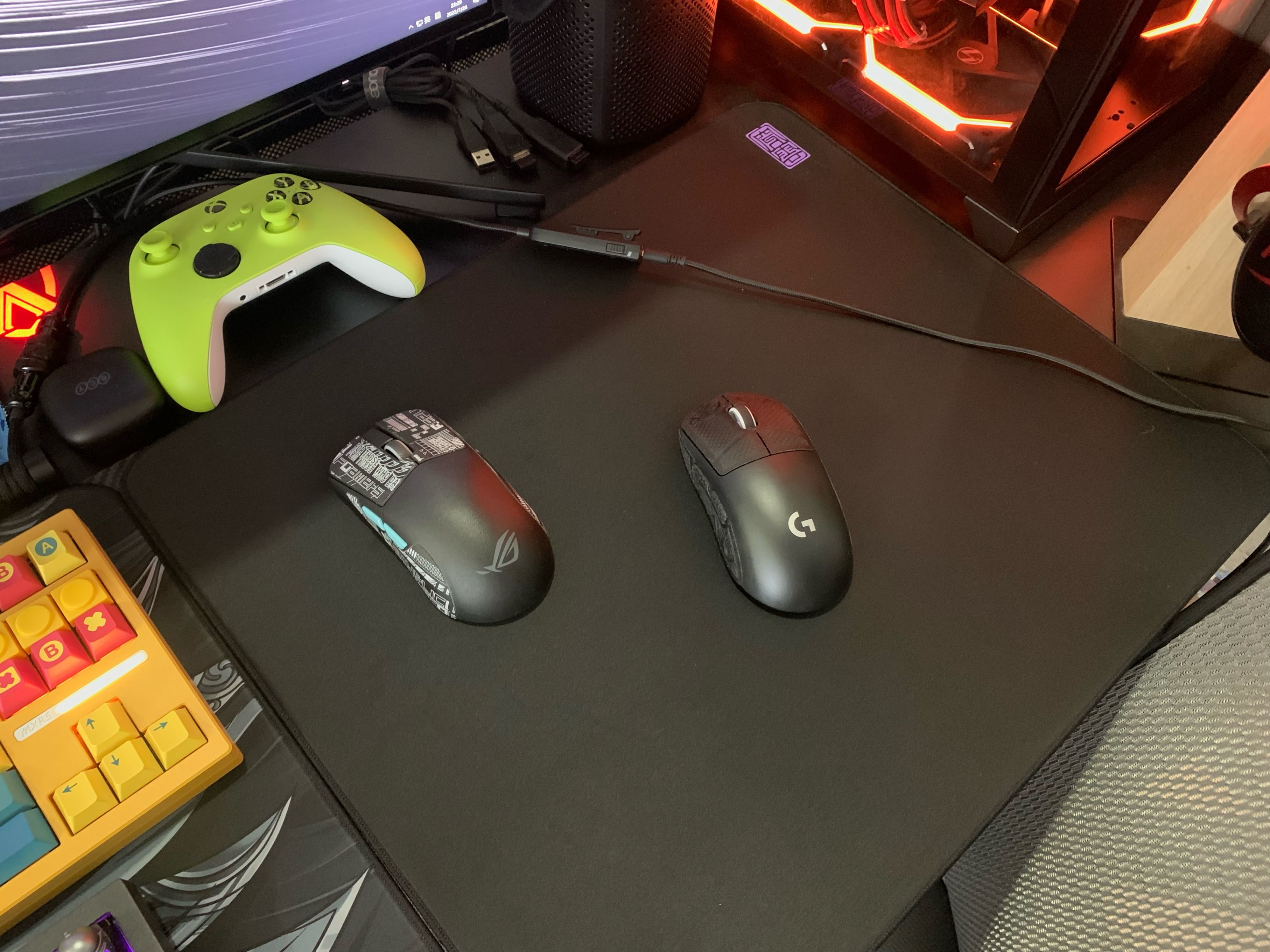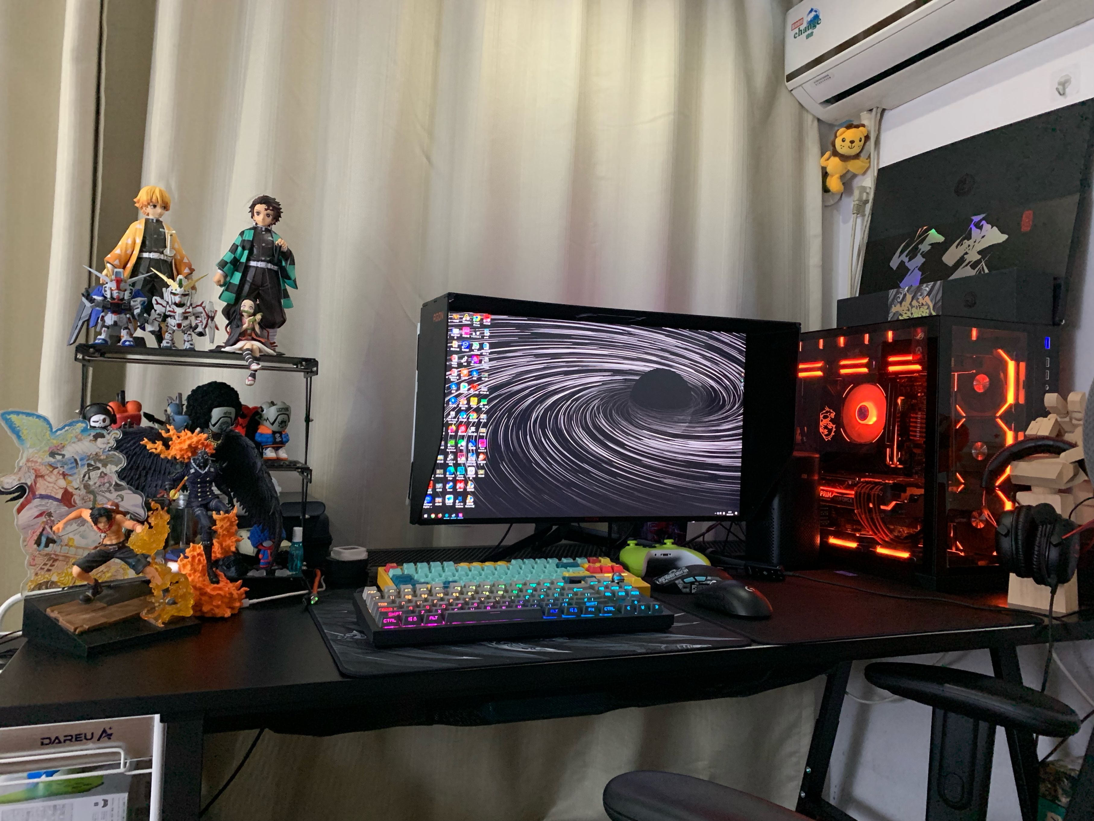 首先說說桌子,在宜家買的烏斯佩160x80電競桌,空間很大,而且底部帶一個收納的編織網兜,很適合線多的玩家,