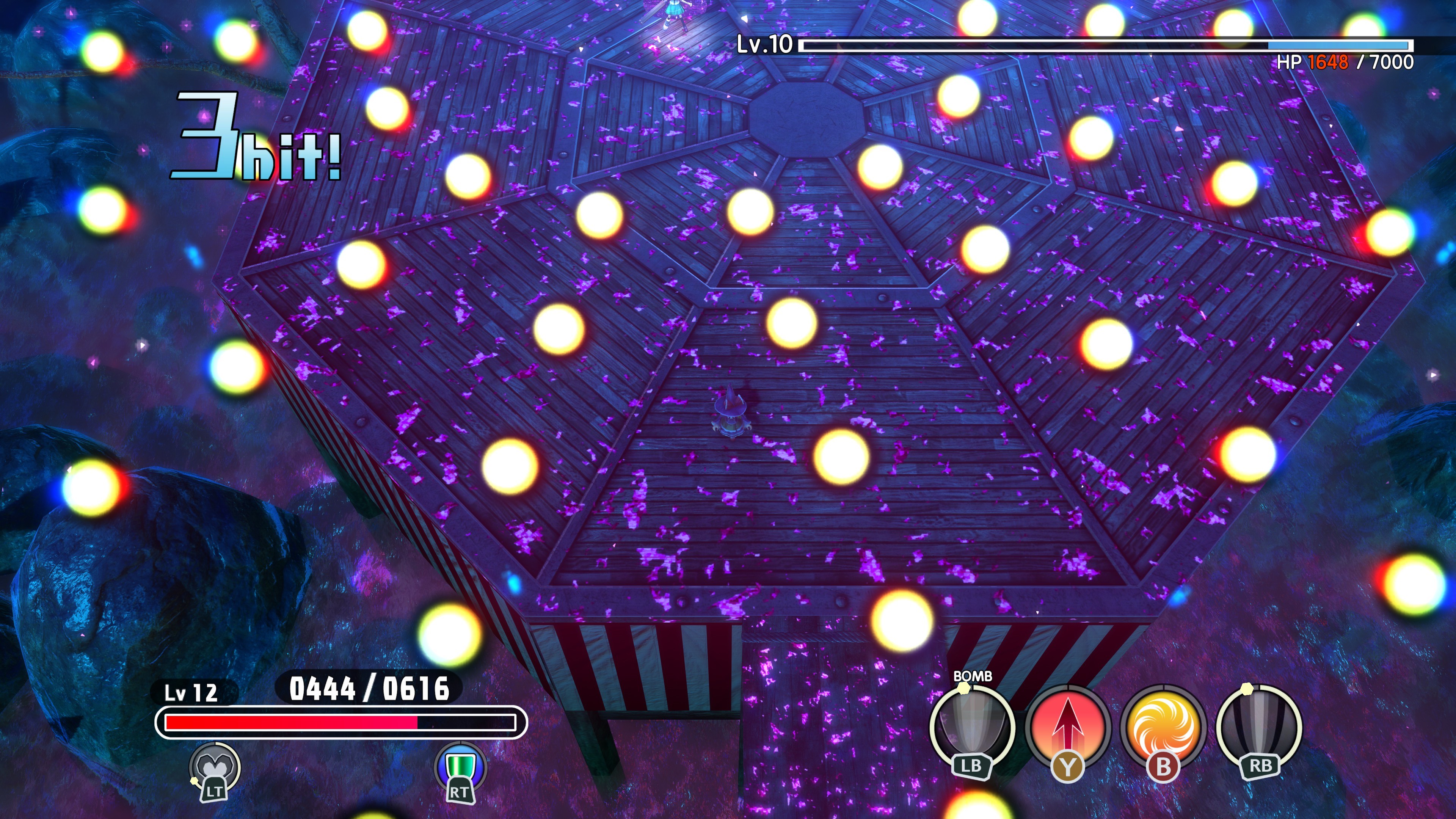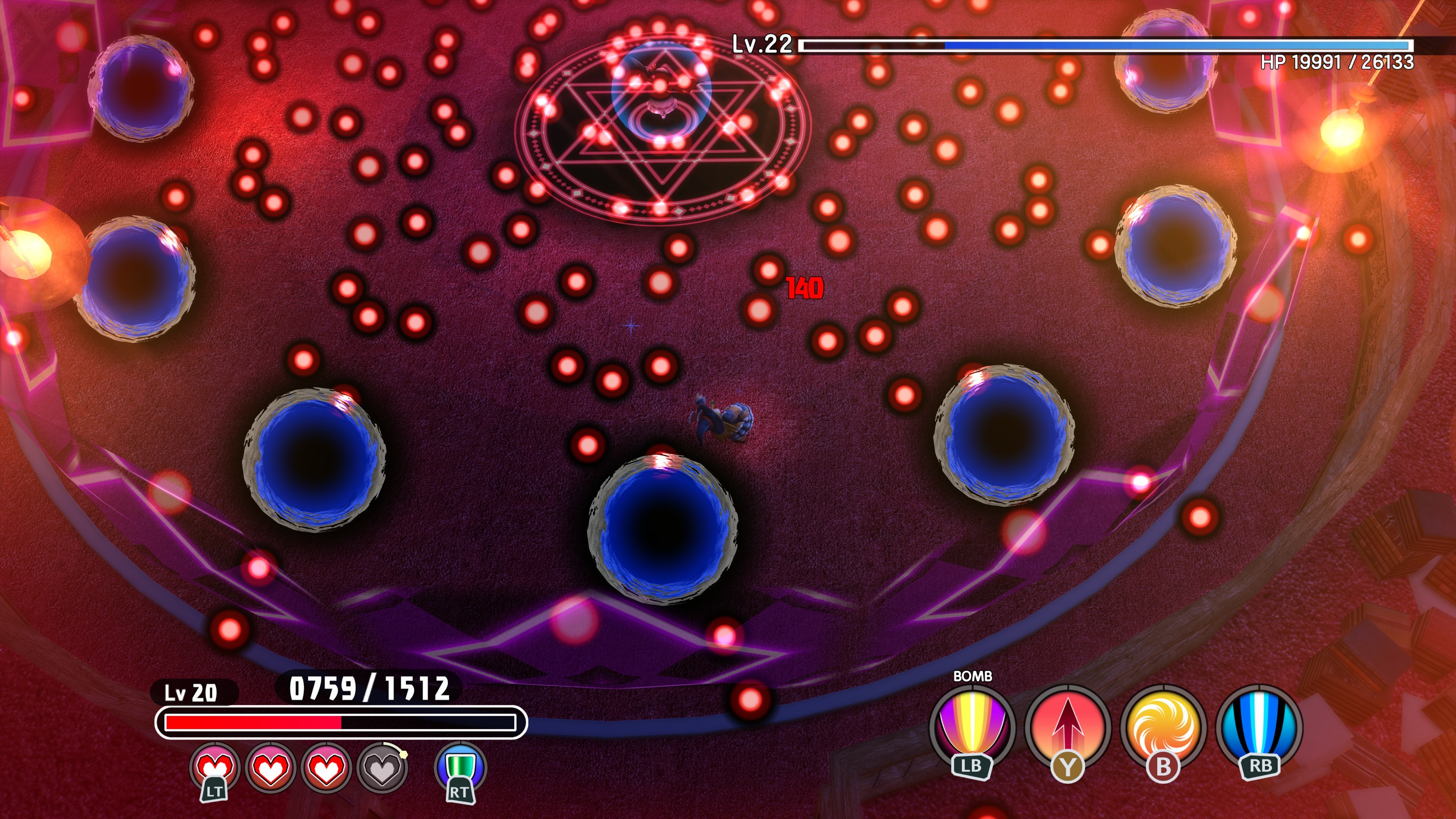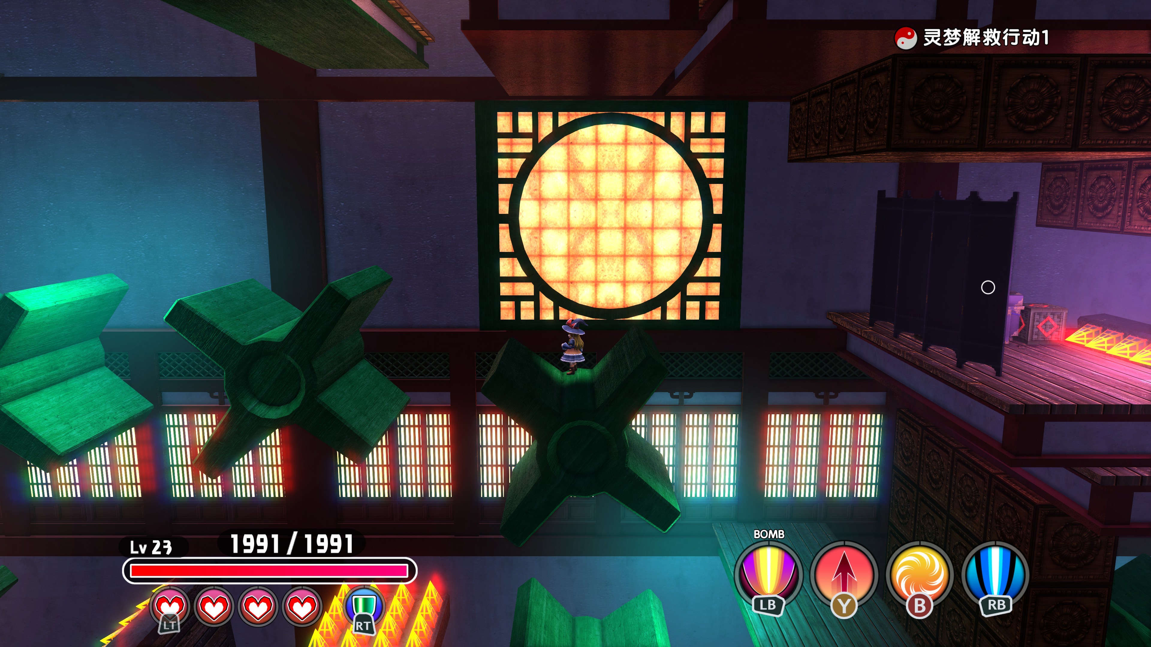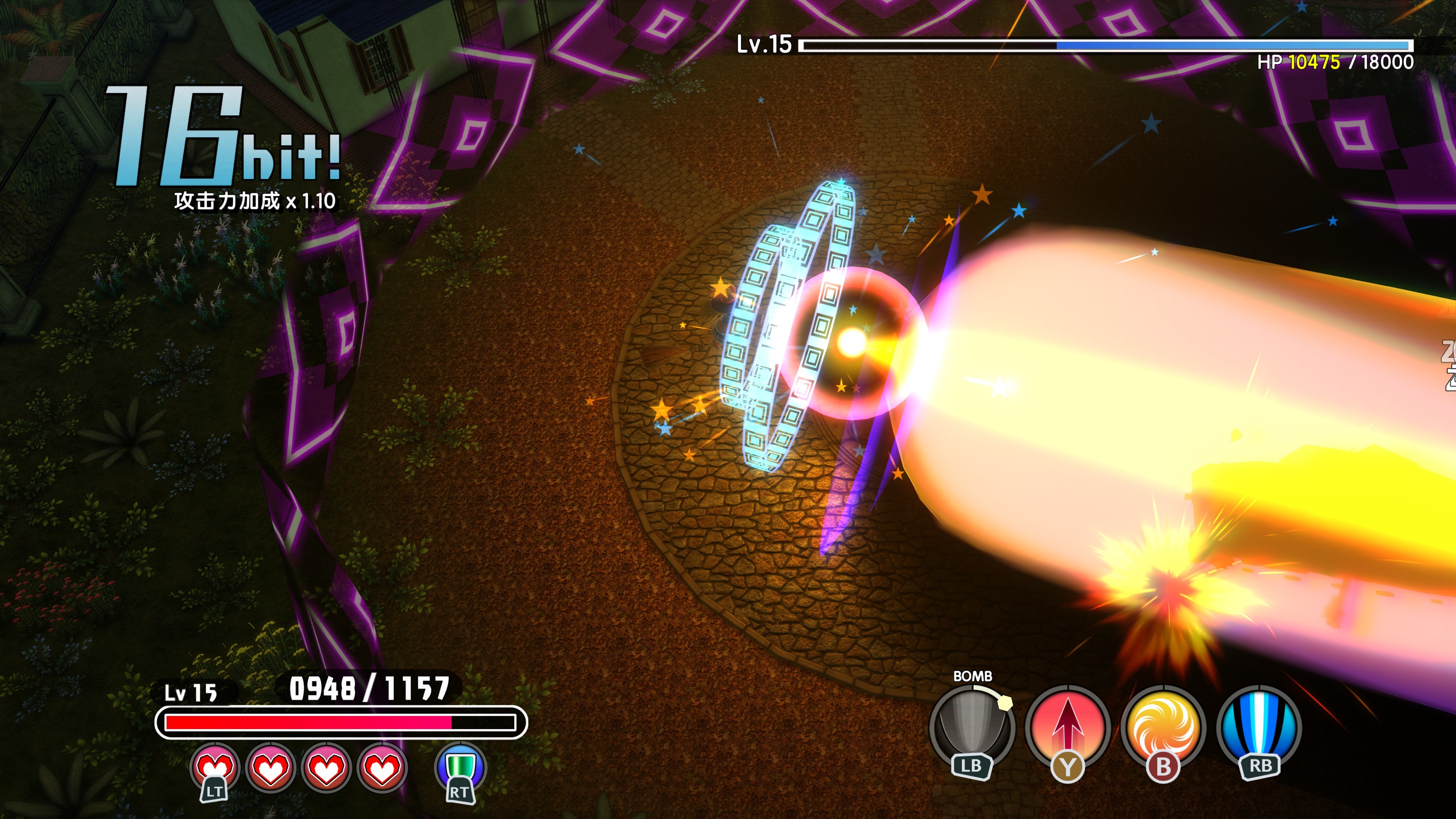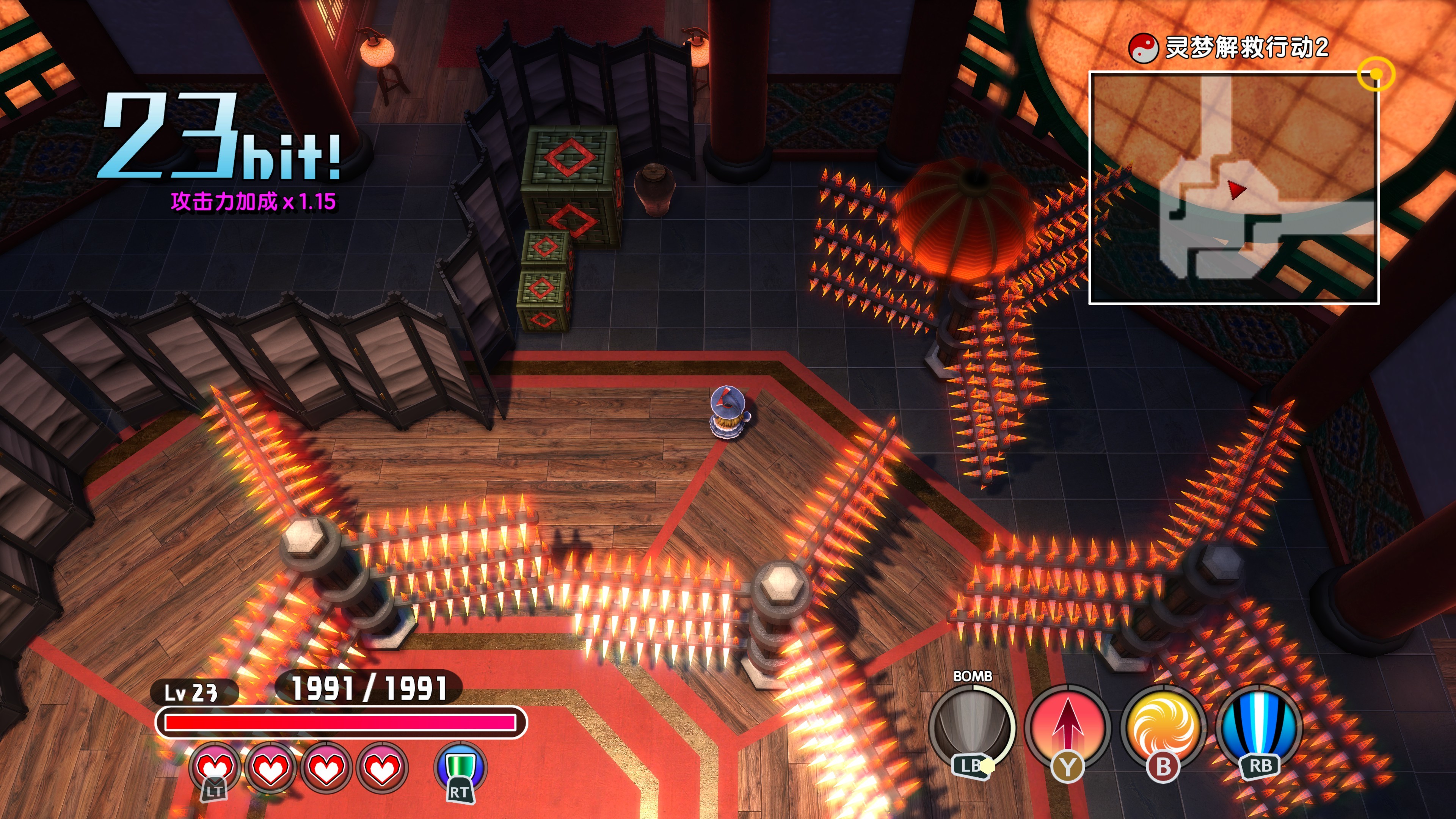 在战斗上敌人也有着东方特色的大量弹幕攻击,BOSS的必杀技也是许多弹幕,此时我们除了格挡弹幕,还可以按跳跃键进行躲避,只要跳跃时机恰当,那么加上格挡可以实现BOSS无伤,当然我们还可以利用大招的无敌来防止敌人大量的弹幕攻击。