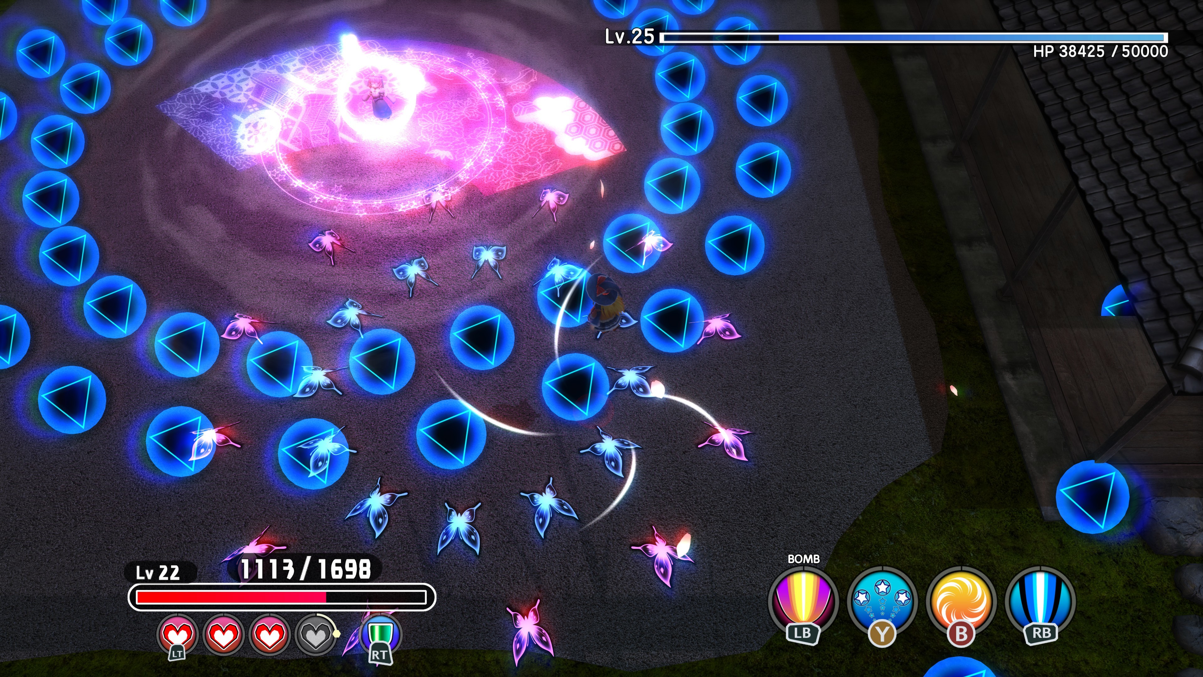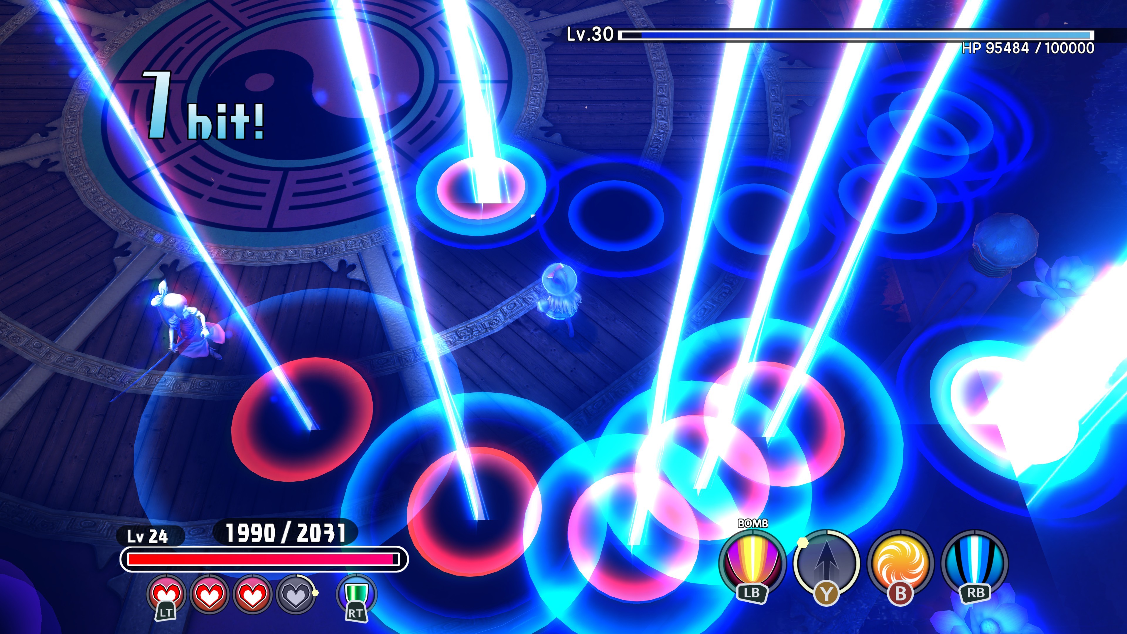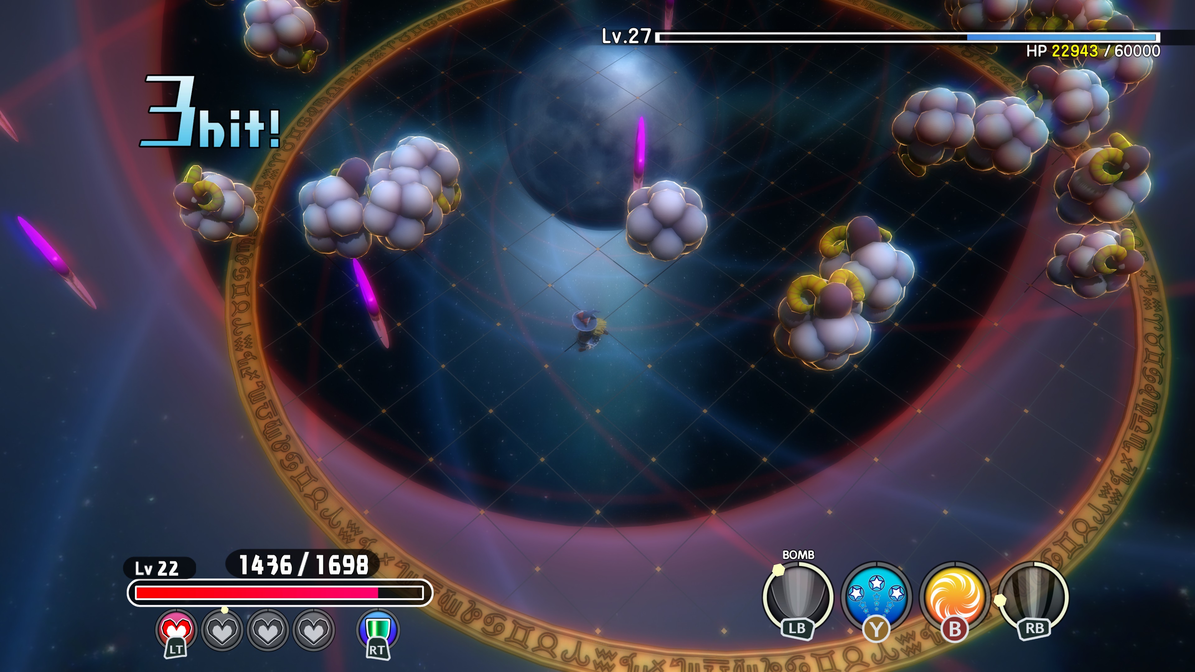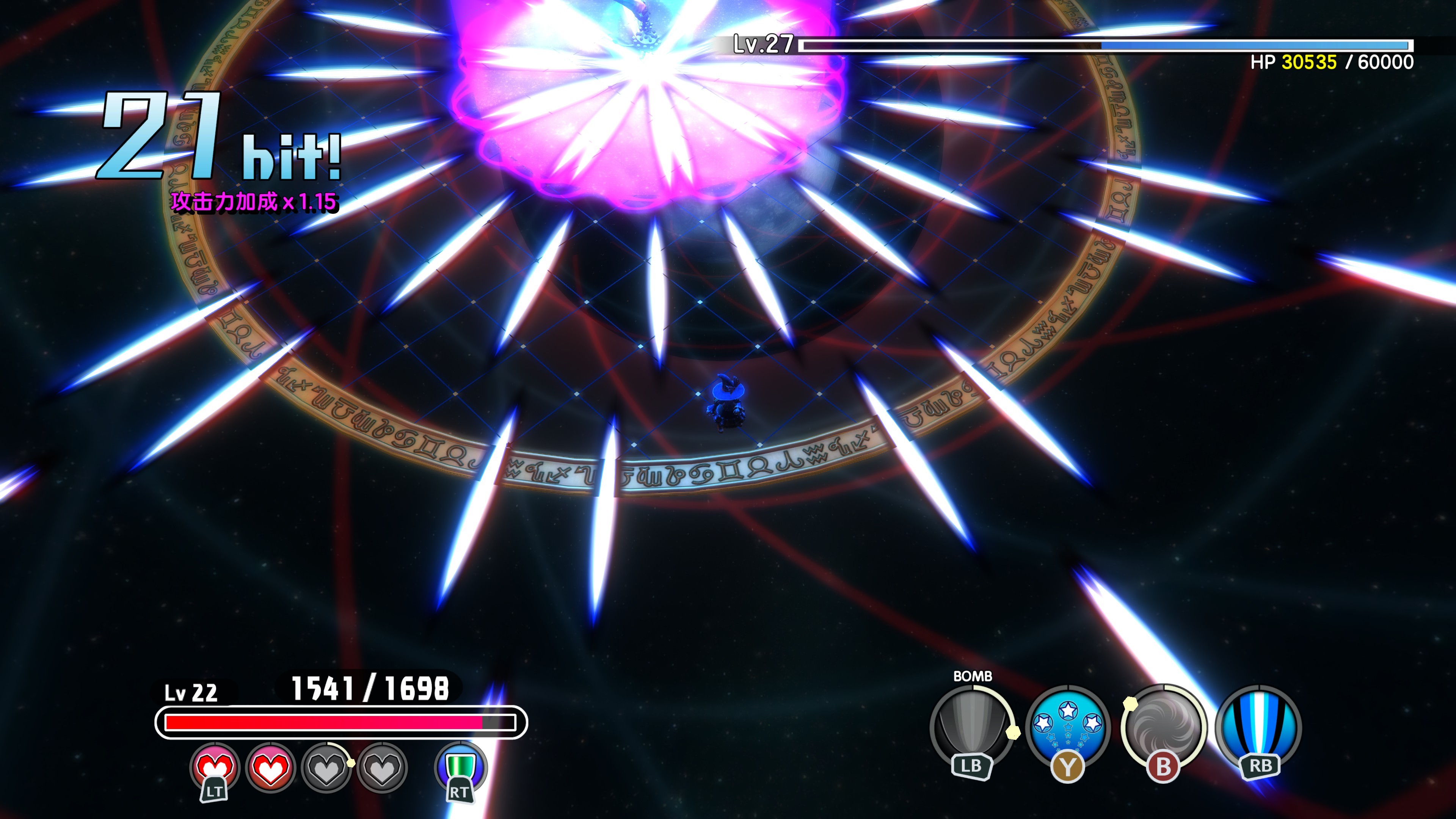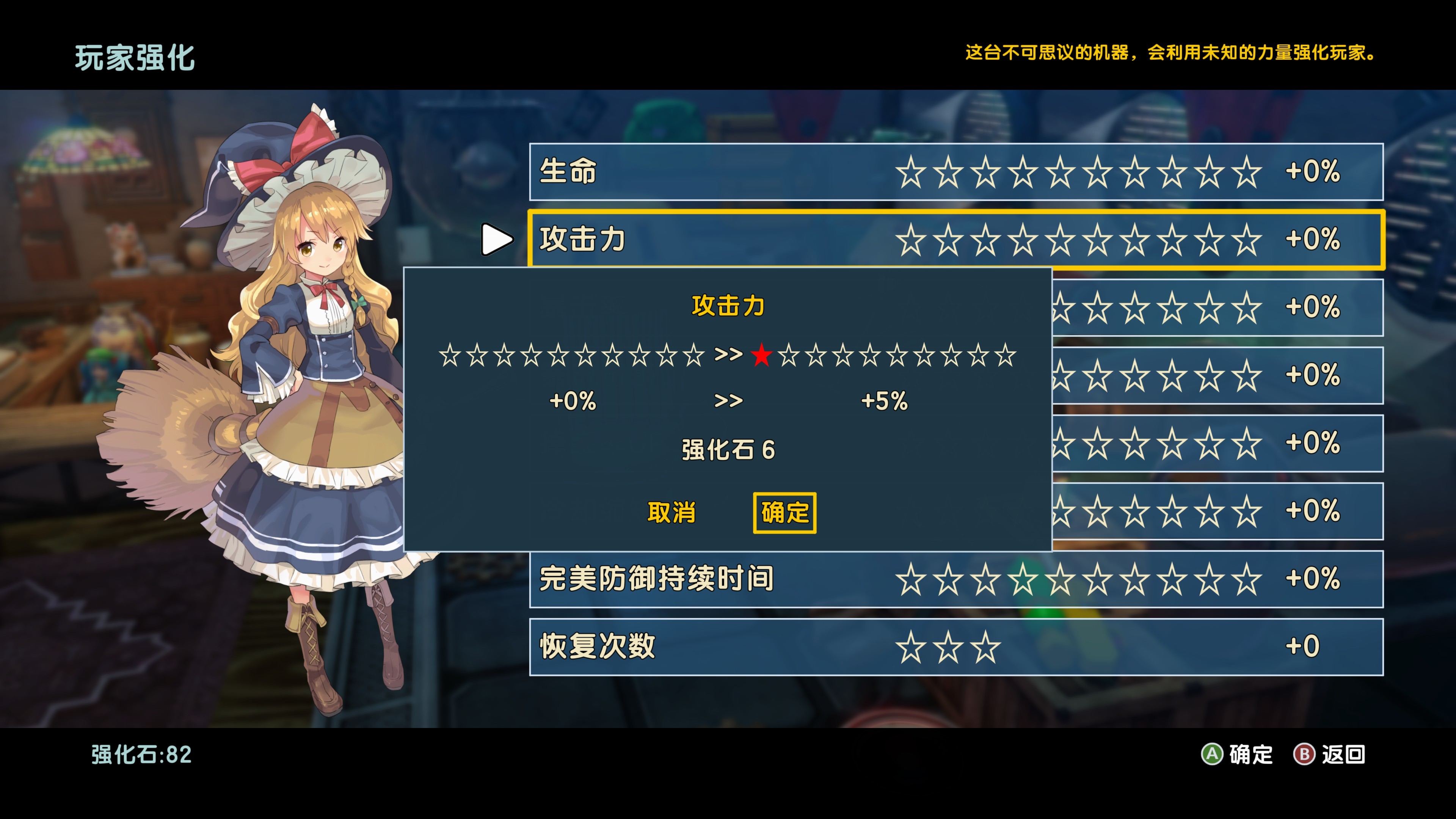 在战斗上敌人也有着东方特色的大量弹幕攻击,BOSS的必杀技也是许多弹幕,此时我们除了格挡弹幕,还可以按跳跃键进行躲避,只要跳跃时机恰当,那么加上格挡可以实现BOSS无伤,当然我们还可以利用大招的无敌来防止敌人大量的弹幕攻击。