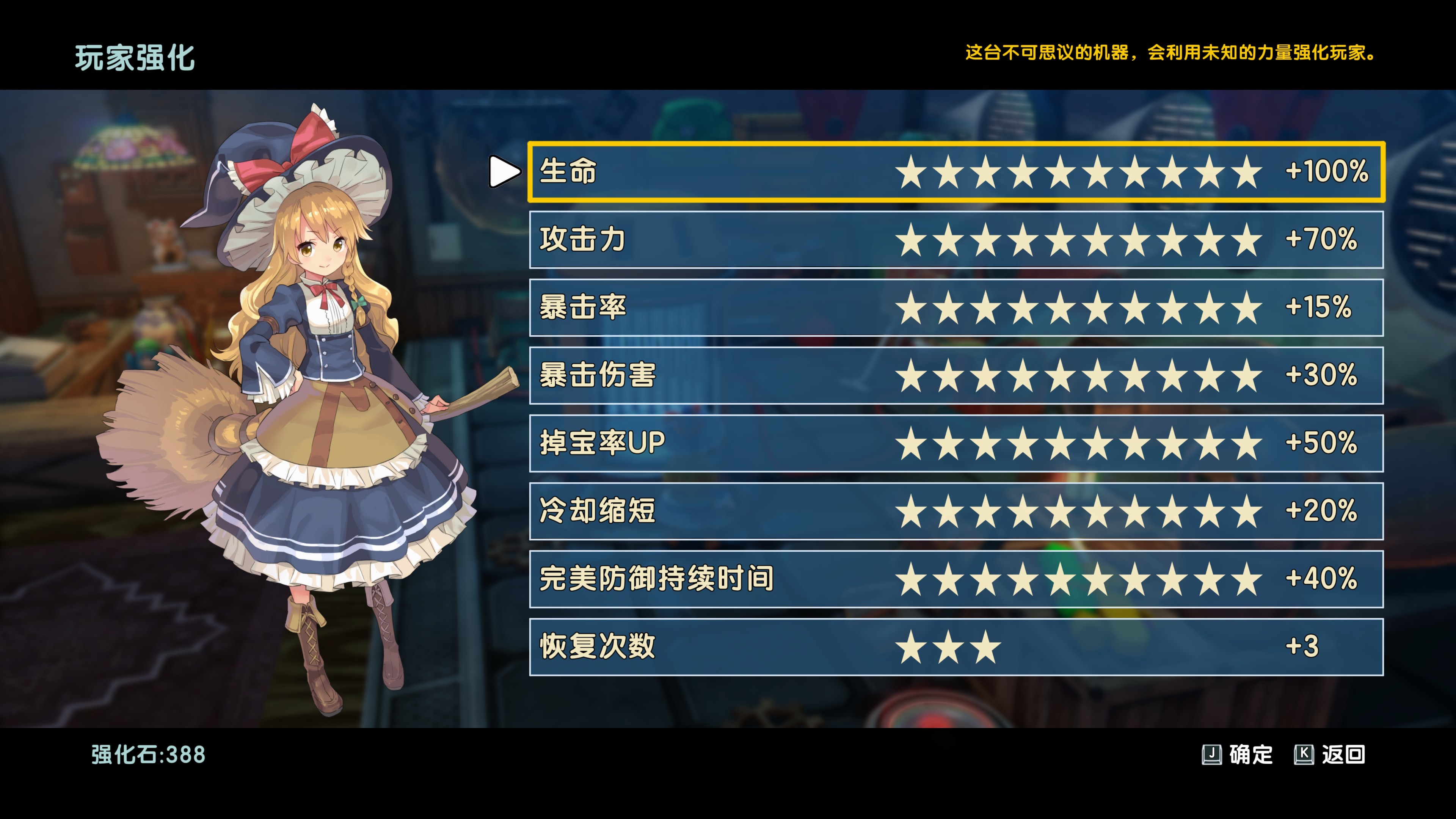 游戏最有用的就是强化石了,因为这涉及到强化人物的属性,强化属性是按百分比来的,提升属性巨大,最重要的是可以提升回血次数,这是非常重要的一个强化,强化人物需要主线推进一定程度才可以开启。