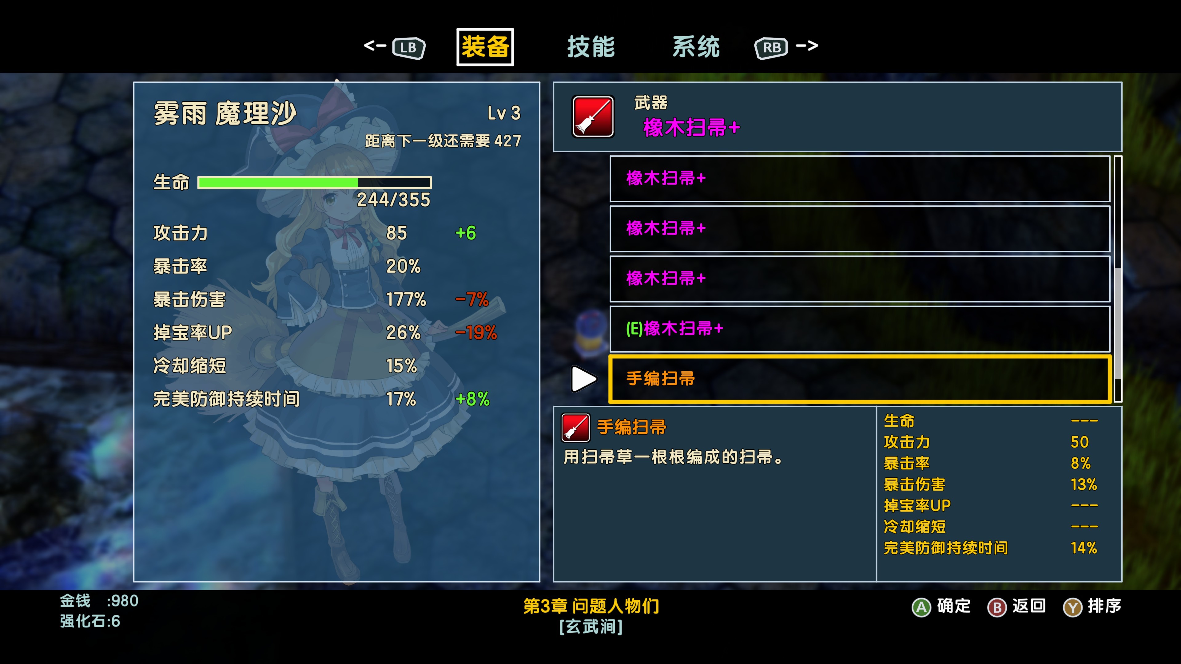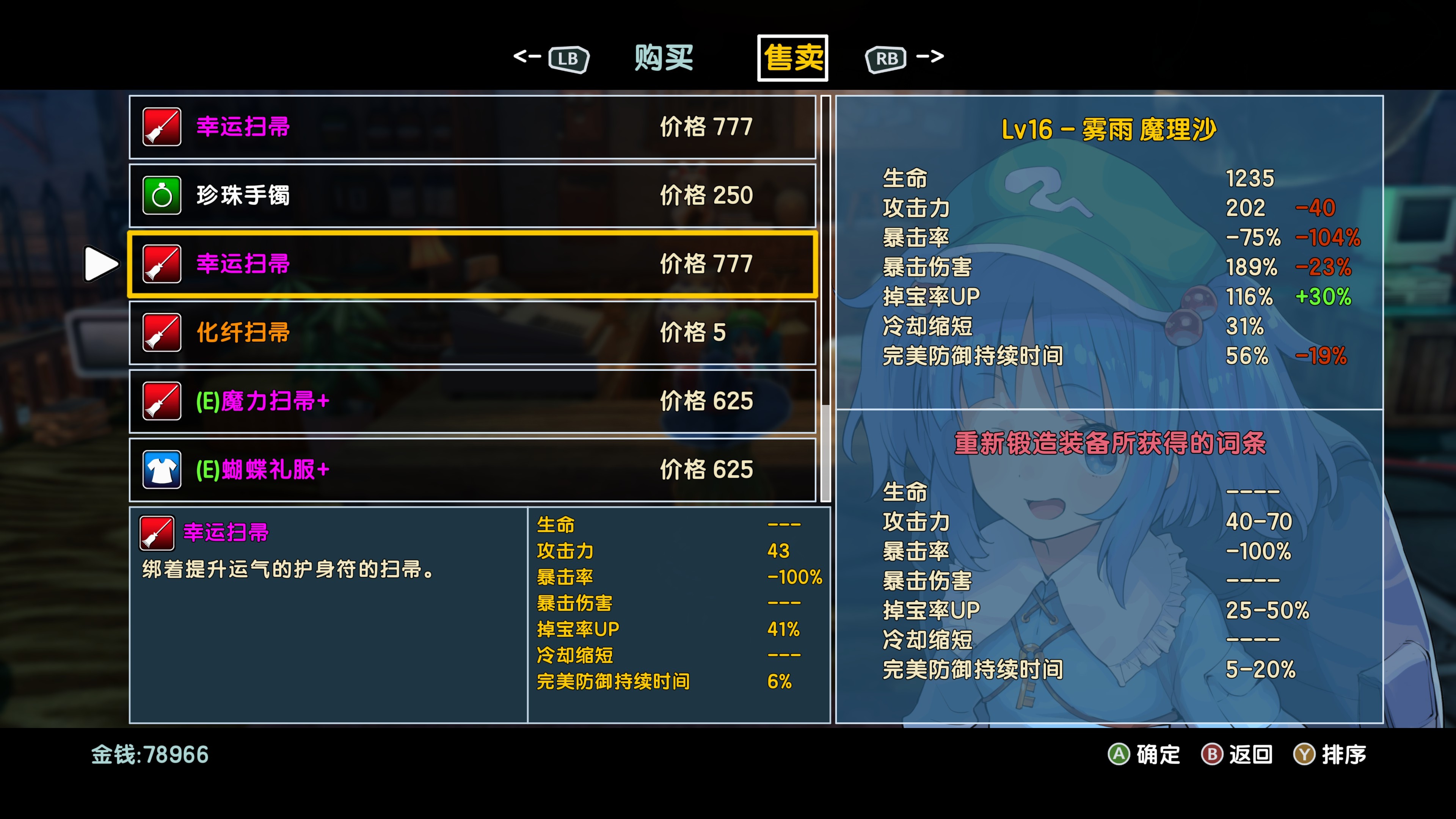 装备分为白色、紫色、橙色装备3个稀有度,也有一些特殊装备,有着自己的特色属性(不是特殊效果,只是某个属性较高)。河童的商店也可以说是可有可无,她之卖白板装备,唯一就是出售功能了,但是出售后金币又不用购买装备,也不用去重铸属性,那么就导致了金币也是没什么用的一个货币。