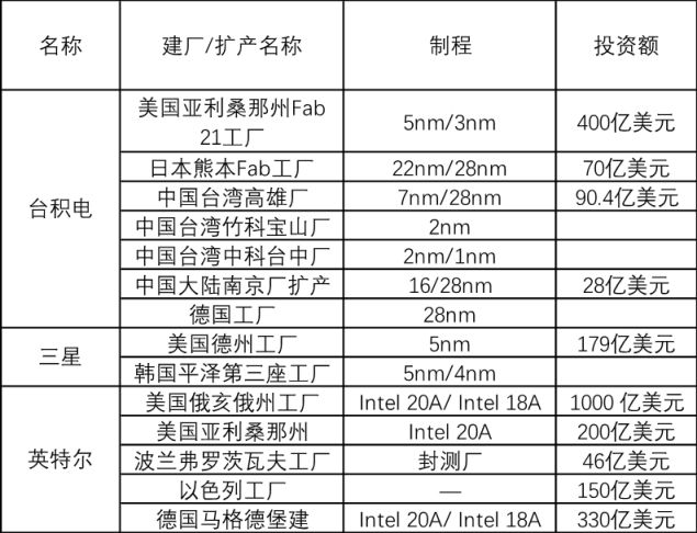 分別在波蘭、以色列、德國建立46億美元的封測廠、250億美元的製造廠以及330億美元的製造廠。