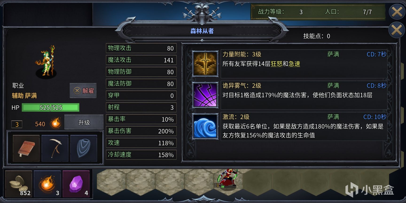 让我最出乎意料的地方在于,这个《传奇生物2》,它好像就不是个正经自走棋,初始有个村庄,可以雇佣职业(好像没有3连升级这个说法,升级需要打怪掉魂用魂来升级)、购买消耗品、休息恢复状态等;