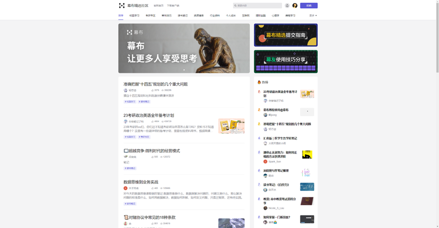 推薦幕布的第二個理由是幕布的分享社區,這裏有很多人投稿的思維筆記和學習筆記。