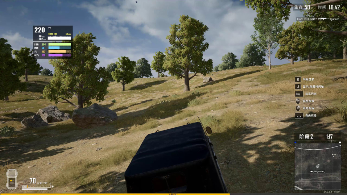 《PUBG 绝地求生》实际游玩体验,三极致画质,渲染比率100%,2K分辨率,游戏实际帧率最低在150FPS左右,大部分时间都能保持在200FPS以上;