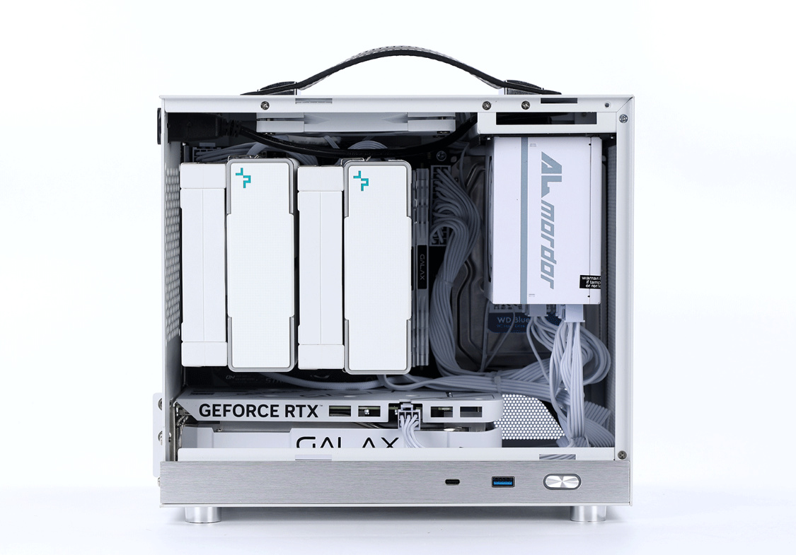 机箱支持ATX电源安装,但是咱为了预留更大的理线空间和硬盘安装空间,还是选择了这款白色版的神雕十三道(Almordor)SFX 750金牌全模组电源,电源三围仅为125*100*63.5mm,小巧的体积可以轻松装进绝大多数机箱里,同时这款电源的风扇还支持智能启停,低负载状态可以营造一个更安静的使用环境。全模组的电源接口搭配上柔软的扁线设计,也可以大大降低装机理线难度;