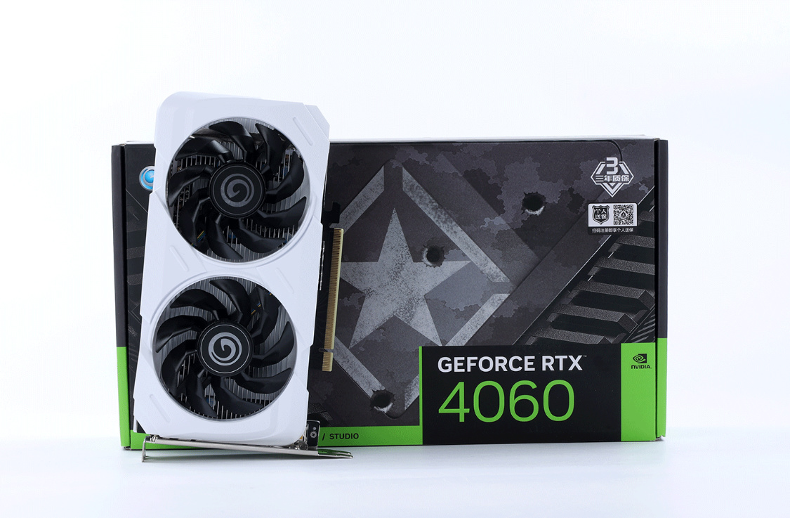 影驰RTX 4060 大将显卡,显卡采用双风扇设计,大面积全白的外壳搭配上单6Pin外接供电,对于老平台升级换代十分友好。全新的AD107核心搭配上8G GDDR6高速显存,畅玩1080P 3A大作不成问题;