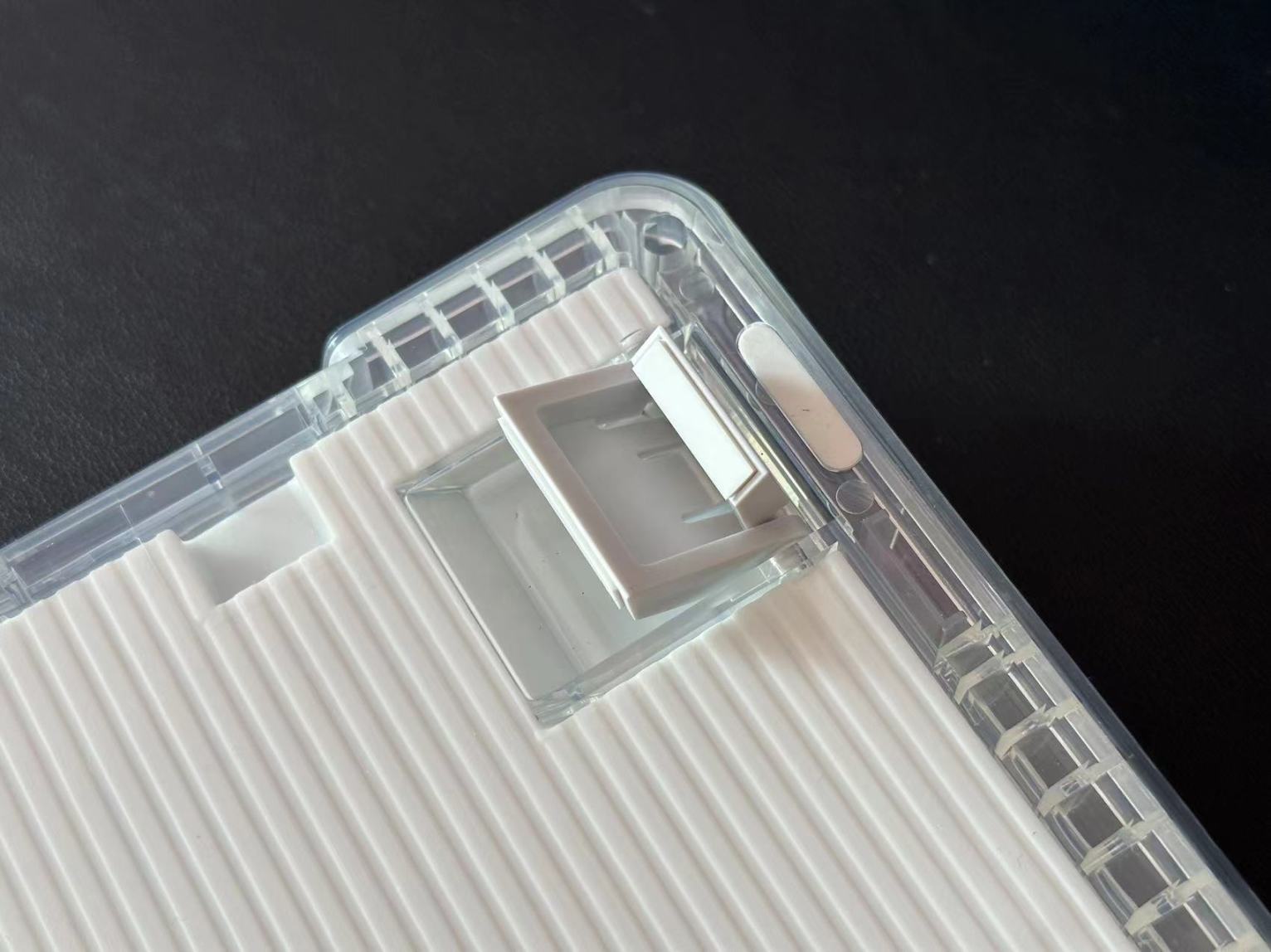 - 定位板:采用的PC材质且做了透明处理的定位板,这样好处在于透光好,而且成本会比一般的贵点。
