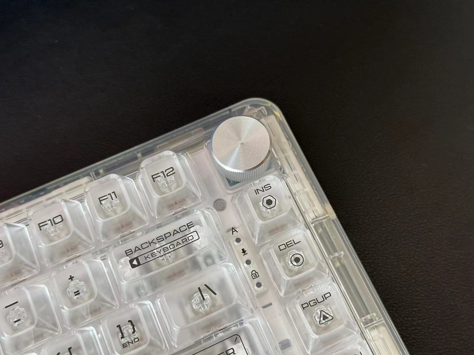 机械师K500F还配备了一颗多功能滚轮,这颗滚轮不仅能控制音量,还可以控制整把键盘的RGB效果,整体使用起来还是非常方便的。