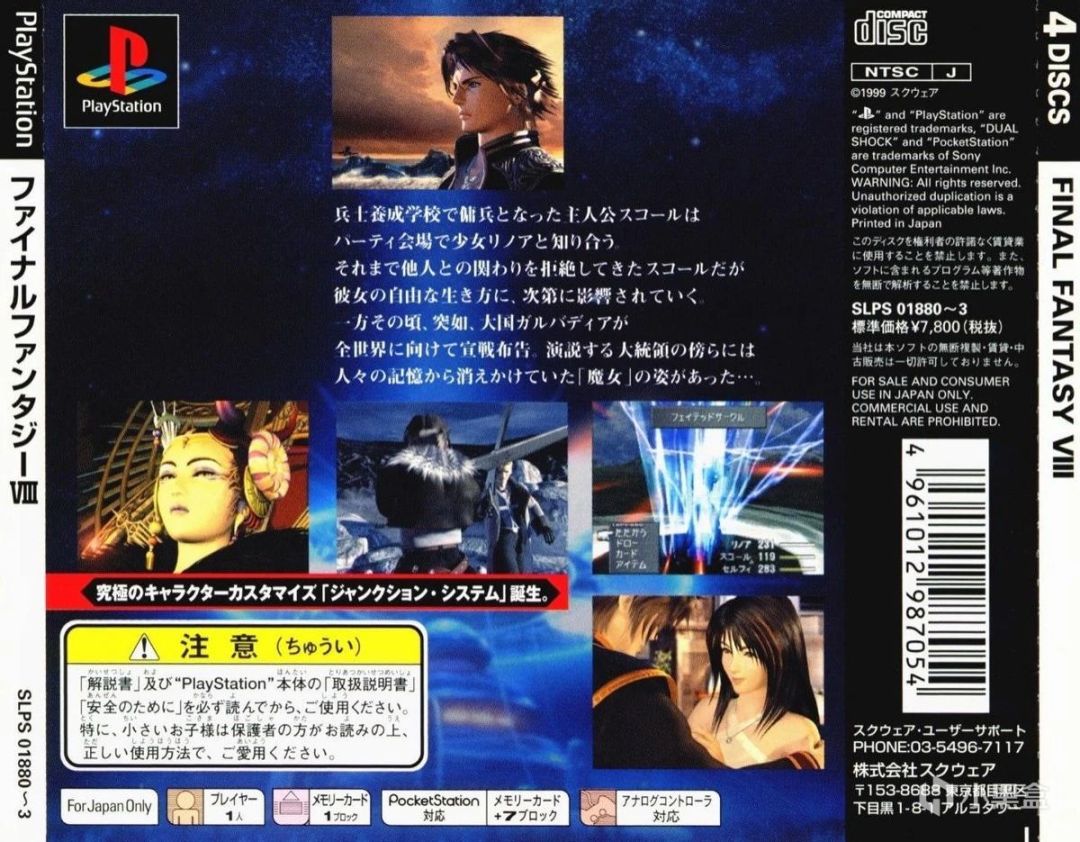 第04名,《最終幻想8》(Final Fantasy 8),史克威爾開發和發行,1999年2月11日發售,總銷量786萬套。