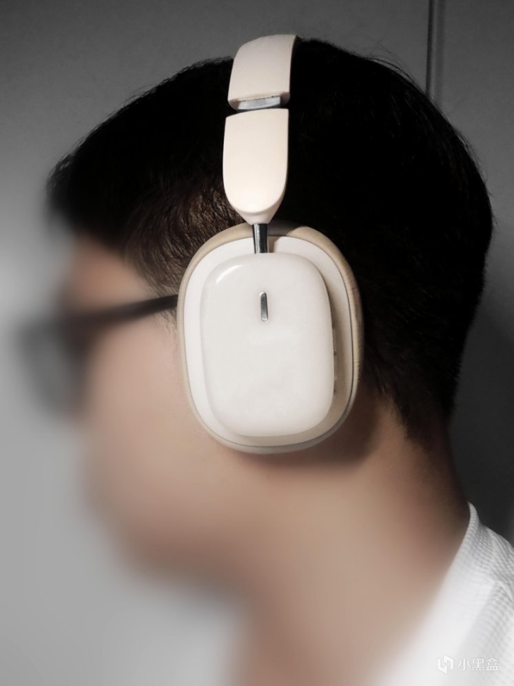 向上走,耳罩部分通過金屬桿和頭梁部分連接在一起,這也是這兩年由四五千元蘋果AirPods Max引領的流行設計。