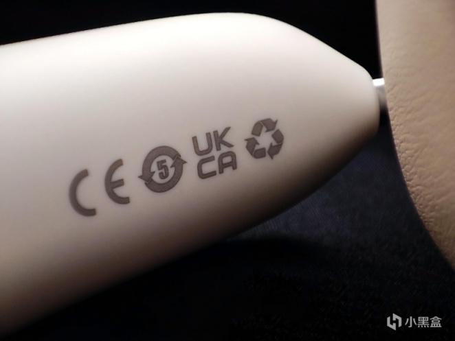 左側連接杆上方則印有四個認證標誌,基本上是質量認證和環保認證。