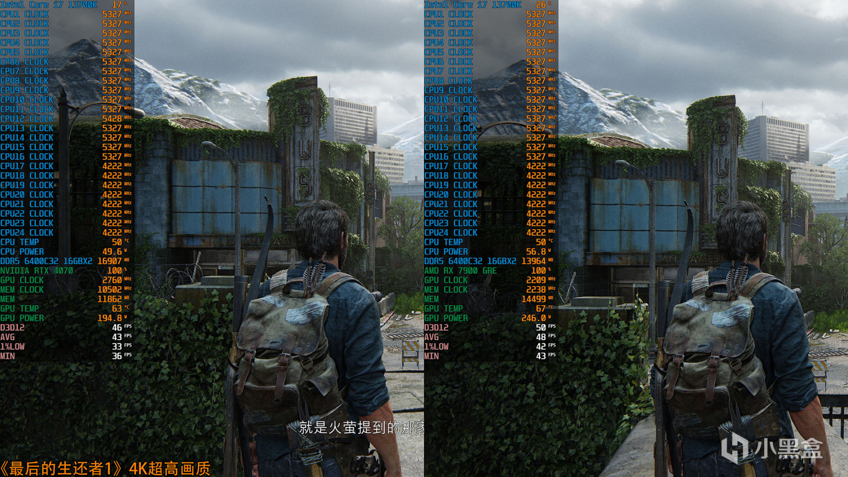 在講述測試結果之前,先來看看OSD硬件監測,其中在《最後的生還者1》中,RTX 4070配備的12GB顯存顯然不夠用,導致內存資源會喫多一些,而RX 7900 GRE其大容量的16GB顯存也要喫到14.5GB,在戰未來方面顯然RX 7900 GRE更從容,舉個真實案例,硬核的基友首發時購入RTX 3080 10GB,他有時會向硬核抱怨,顯卡運行一些最新3A顯存已經不夠了。