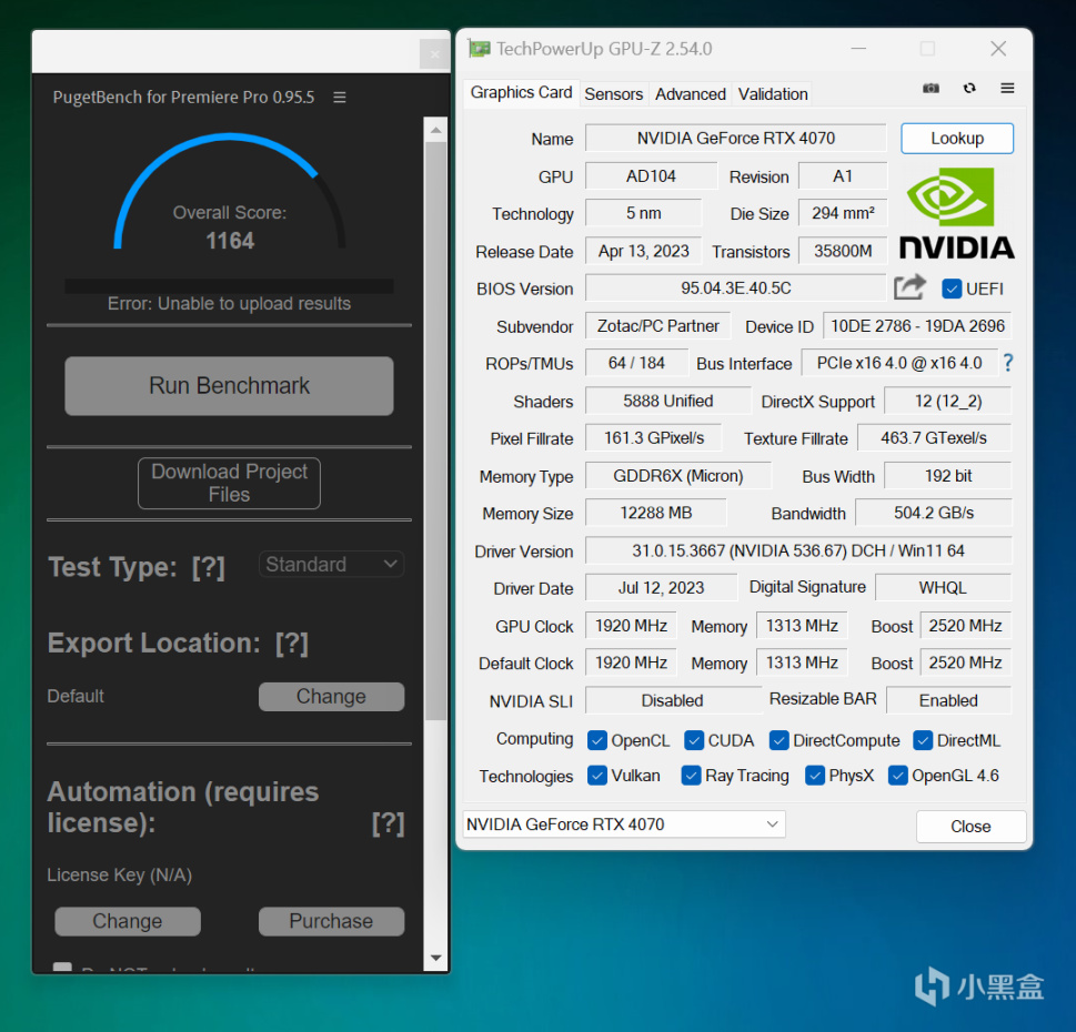 PugetBench for Premiere Pro基準,RTX 4070得分1164