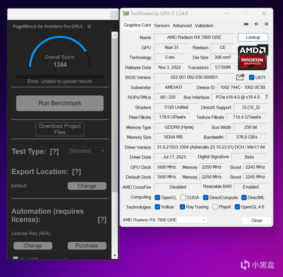 PugetBench for Premiere Pro基準,RX 7900 GRE得分1244