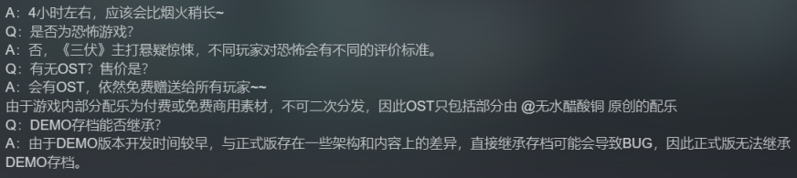 此外,据发行商介绍,《三伏》的流程长度约为4小时,比《烟火》的流程稍长一点。且本作主打悬疑,胆小的玩家可以考虑入库尝试了啦~