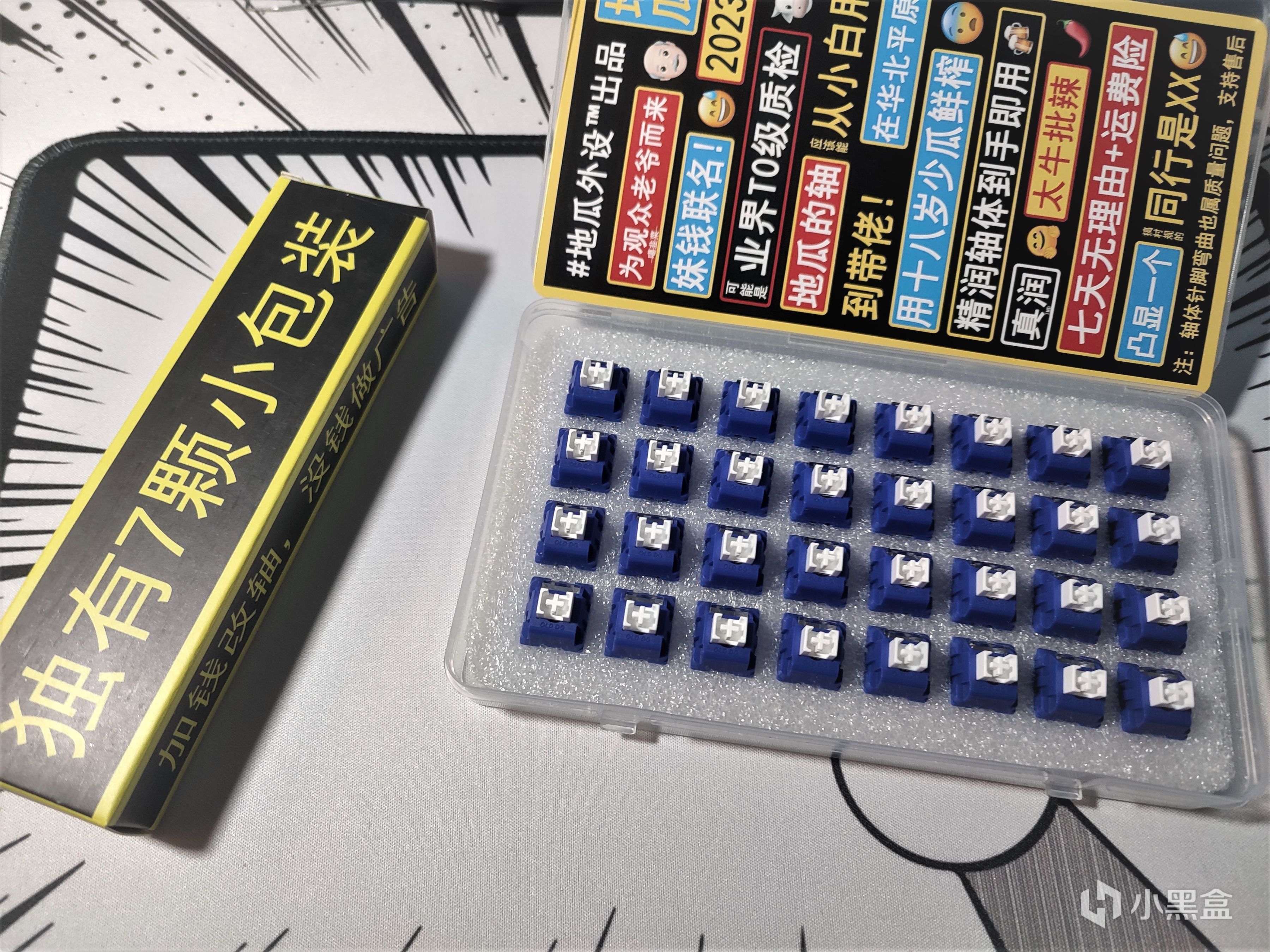 打開包裝就能看到軸體了,一盒是4*8一共32顆軸體,爲了保證適配絕大多數配列,還加了一個7顆包裝的額體驗包,他真的,我哭死。