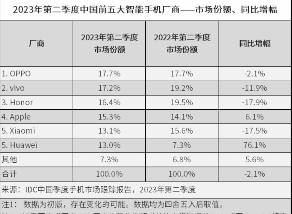 我最意外的就是小米和华为的销量占比,上面也提到了小米13,手机确实很不错。但是市场可能对小米来说还是不是很认可?