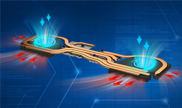 微星雷鸟17设计了酷寒散热系统Cooler Boost 5,两个无双风扇,六条FrozenTube热管采用全新共享设计同时连接CPU、GPU,还有四个暴风立体散热孔、D面大面积风窗散热。