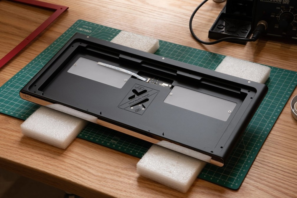 但既然采用了一体化的底壳设计,却不做隐藏螺丝,不免成了这把套件的一大遗憾。其实考虑到上盖和下盖在结构上不承担主体的连接,完全可以考虑将键盘上下盖做成磁吸式或者内锁螺丝的结构。