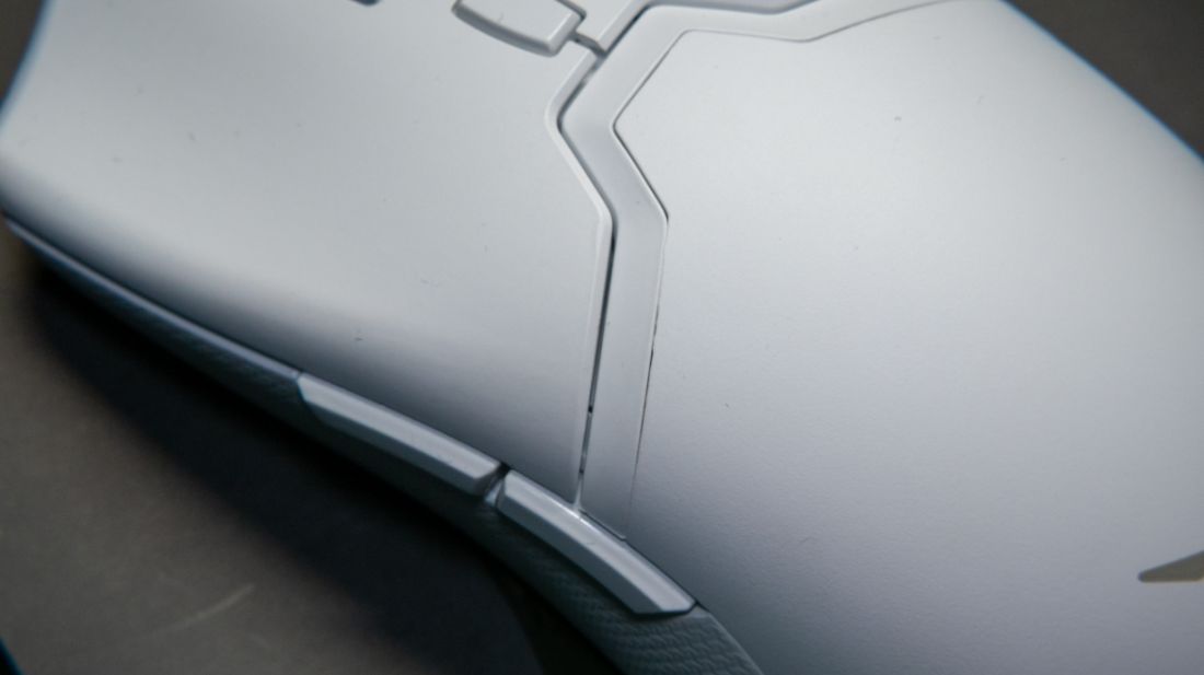 但侧键设计的位置有些靠前,如果你是趴握玩家的话则需要拇指都要往前探一探才能按到。抓握和指握玩家则不需要这样的顾虑。