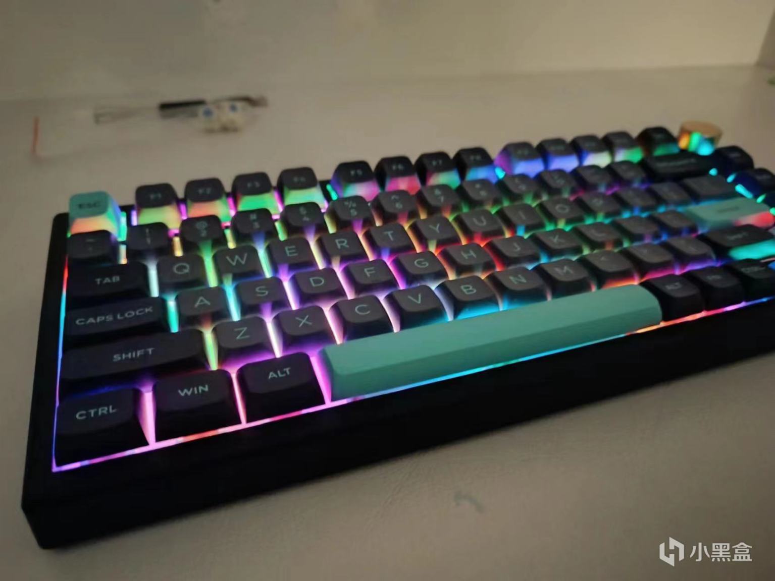鍵帽使用PBT材質,手感不錯,但是我個人感覺這個鍵帽比較薄,痛點就是該鍵帽不能透光,,,其實影響不是太大。