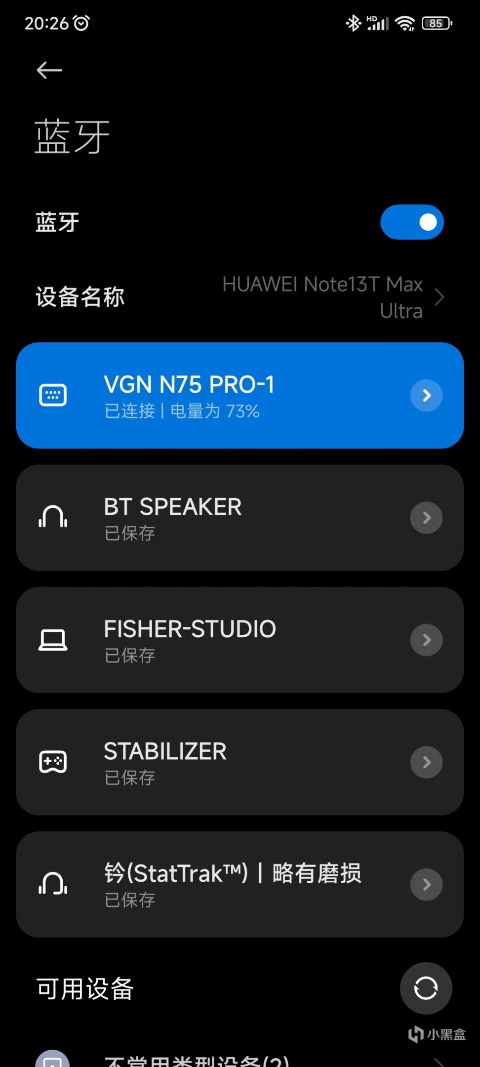 遊戲時我採用2.4G連接方式,沒有感覺到延遲,圖二爲手機藍牙連接,成功率也很高很快。提供了三個藍牙連接對象,說實話我個人感覺有點少,但是大概率是夠用的。