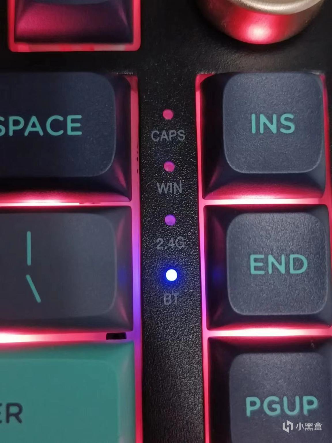 模式切換由鍵盤背後的按鈕切換,有指示燈提示,不過吐槽一點這個指示燈藍色LED廉價感確實挺強的。