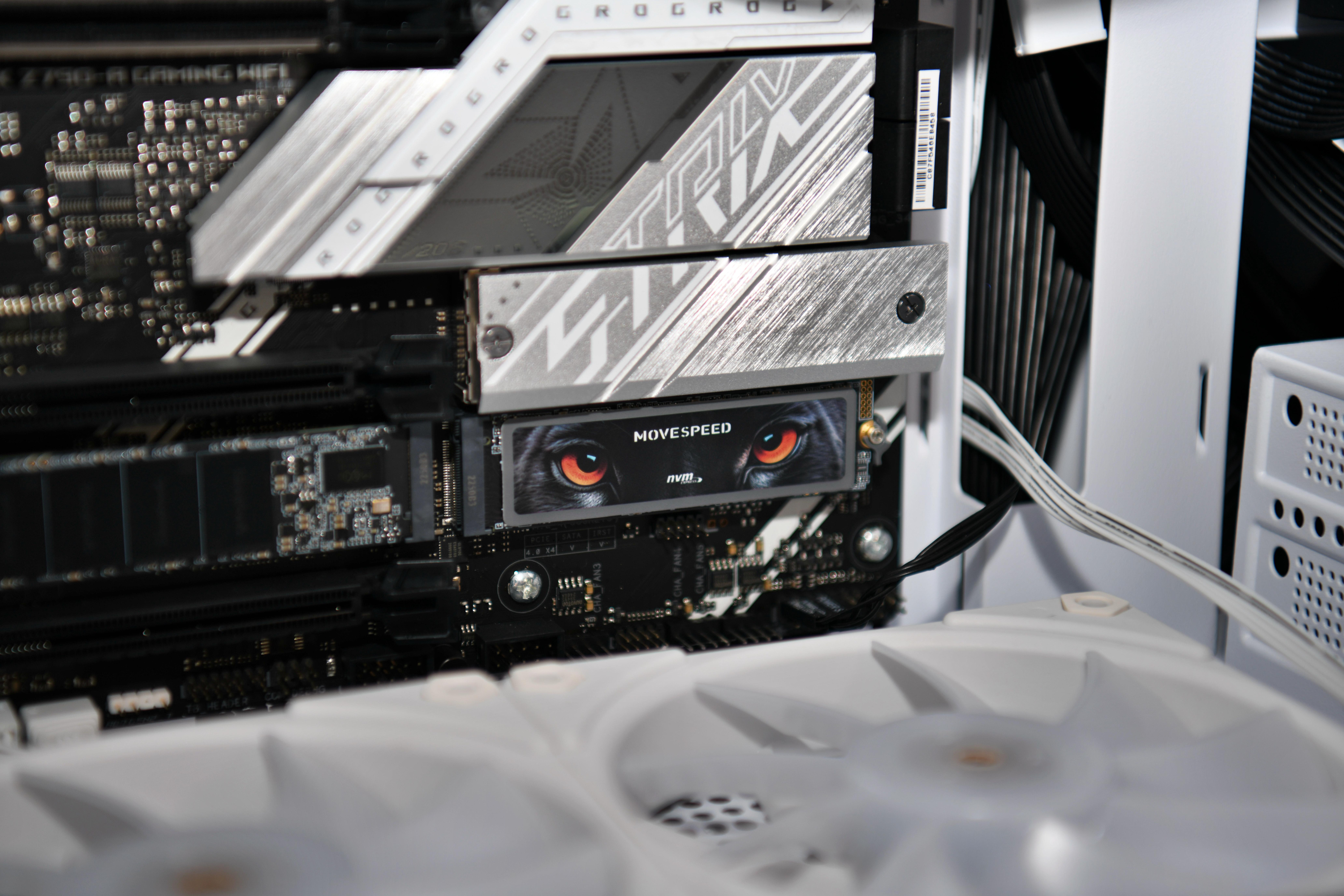 我的台式机主板是ROG吹雪Z790A,预留了4个PCLe4.0接口,刚好还剩下1个,所以就打算把这条移速黑豹4T固态再加装上去。