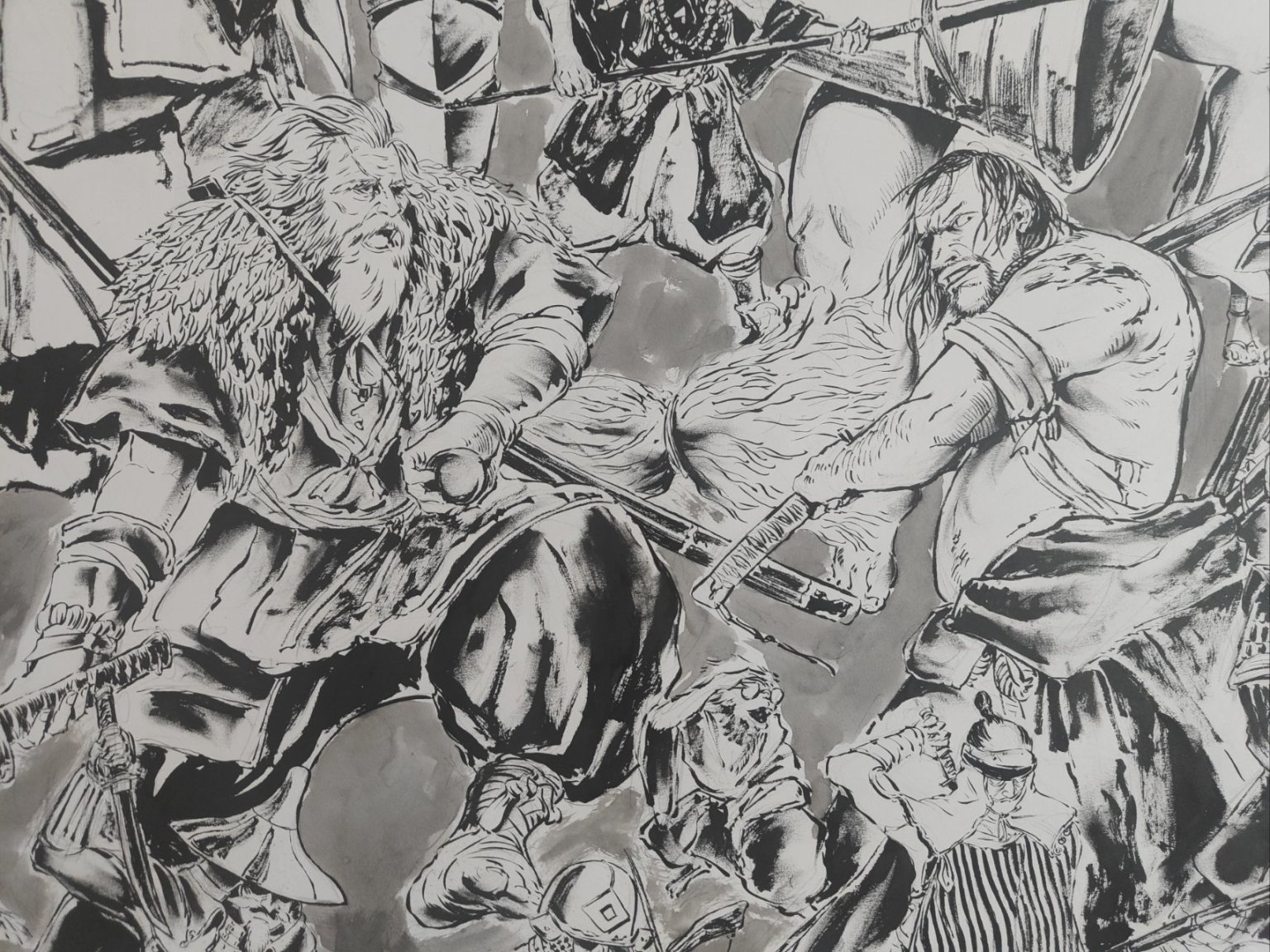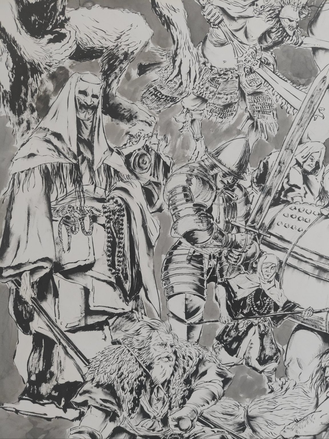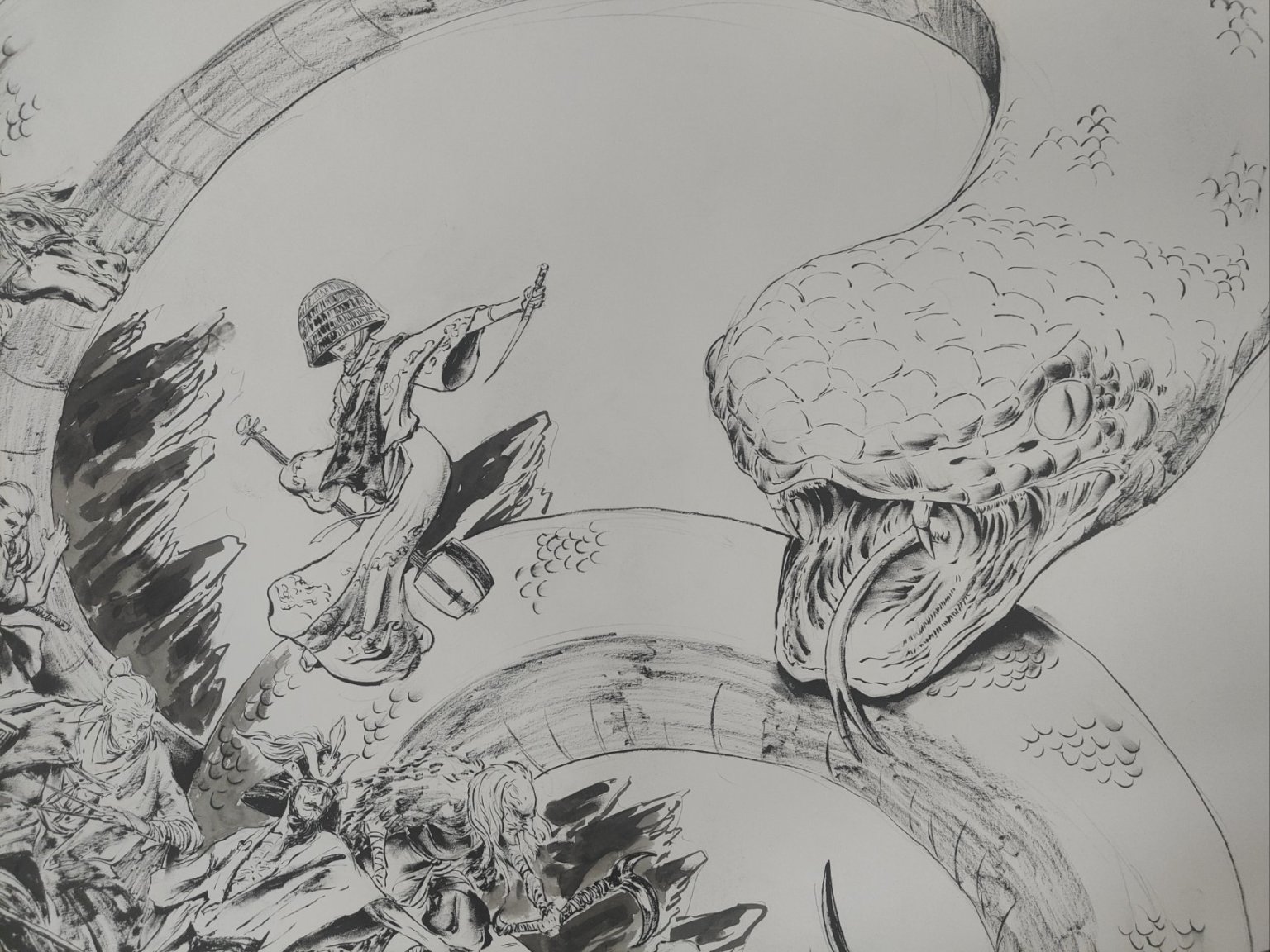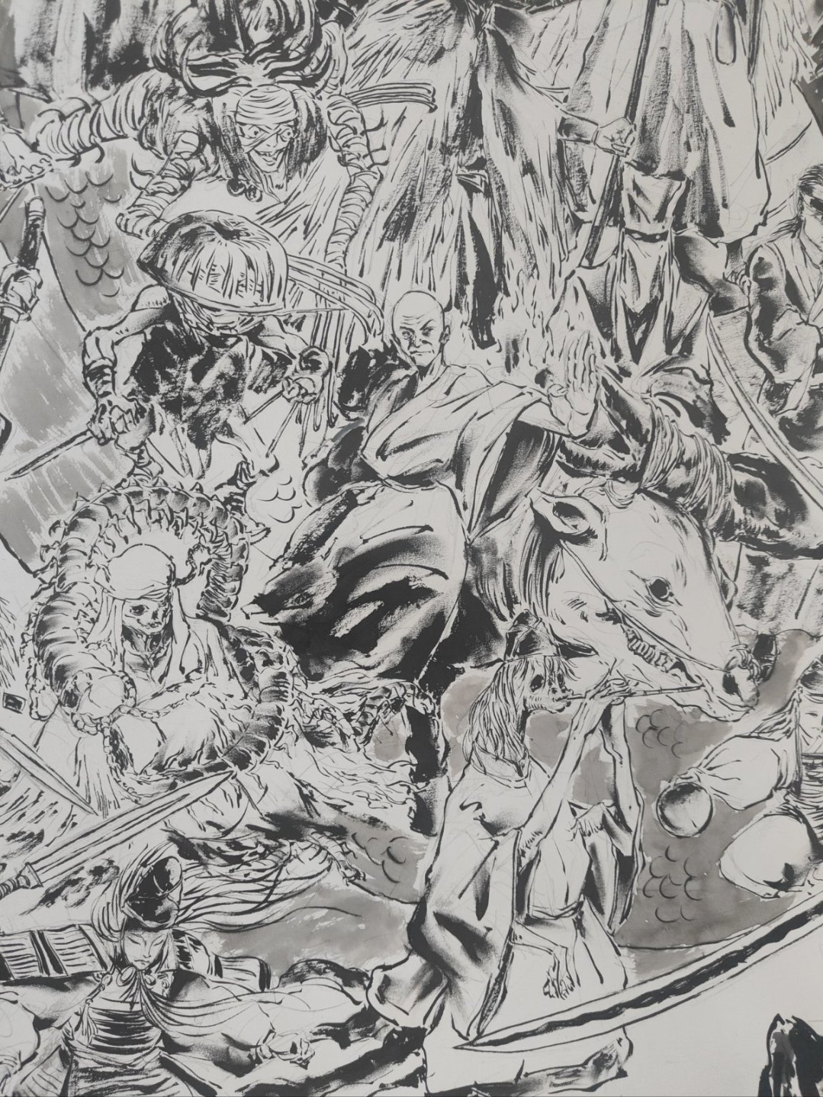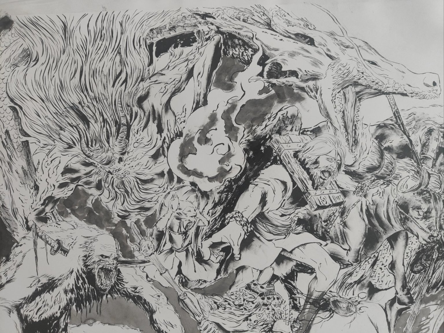 比过年的时候画炉石是有些进步的,人物之间的关系相较之前分的比较明显,模仿金老师的揉墨调子也初见雏形,毛笔的掌控能力在手感上也肉眼可见的进步了。