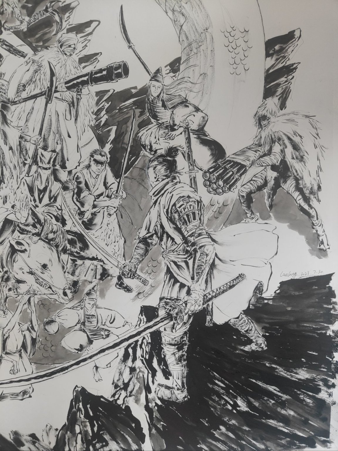 但仍有很多不足,下一步就是要学习金老师让多角色在同一透视下存在啦。谢谢朋友们的支持,我会继续加油的!一定!#只狼# #画画# #今天你画画了嘛#